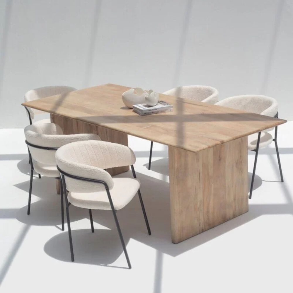 Elegant White-Look Table & Pink Chairs – 6 Seater Ceramic Dining Set