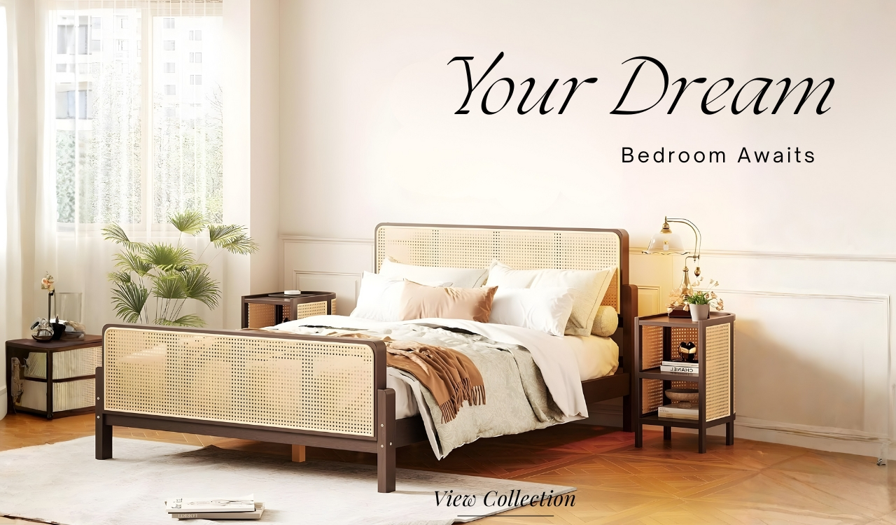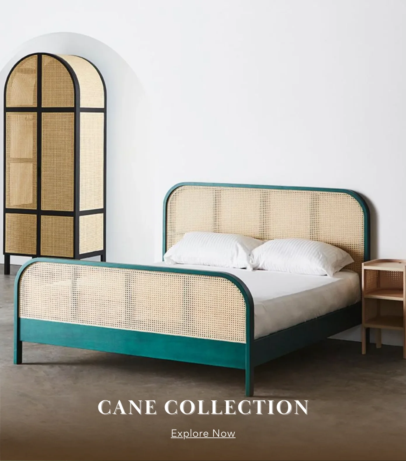 Jodhpuri Modern Cane & Khaki Oak Wood Bed