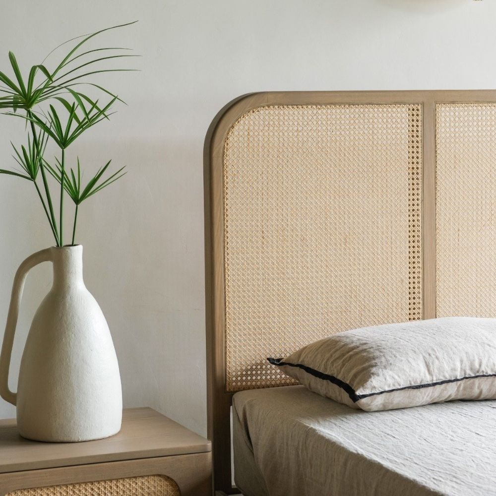 Jodhpuri Joinery Rattan Dark Wood Bed