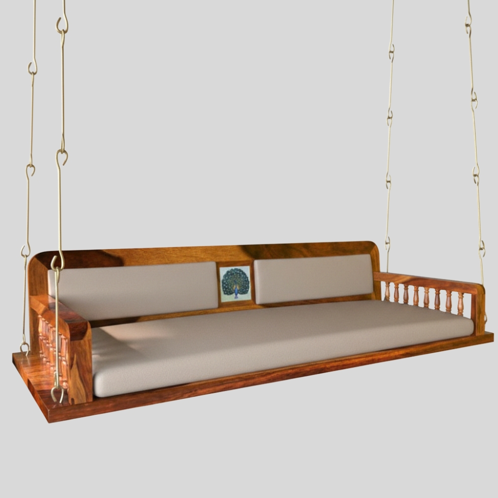 Heritage Tiles Fitted Large Handmade Wooden Swing for Home [Jhula]