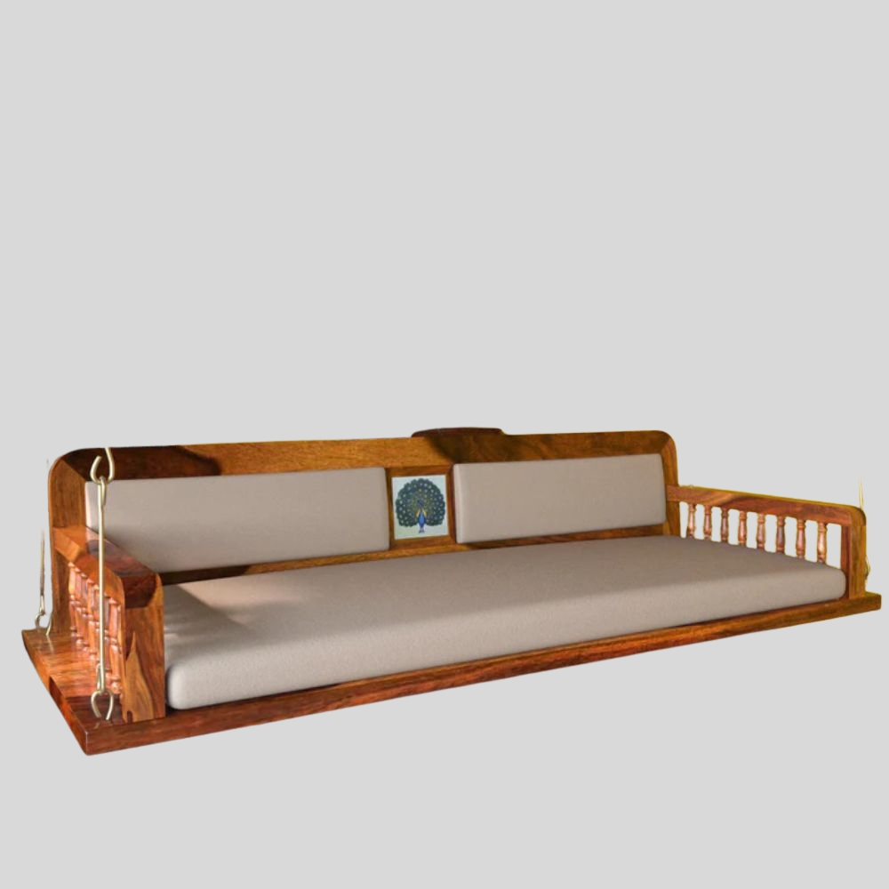 Charming Cream Upholstery Seating Wooden Handmade Swing for Home [Jhula]