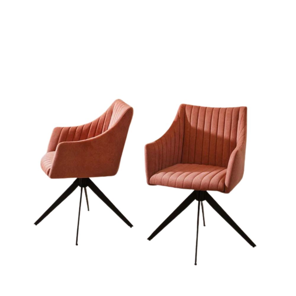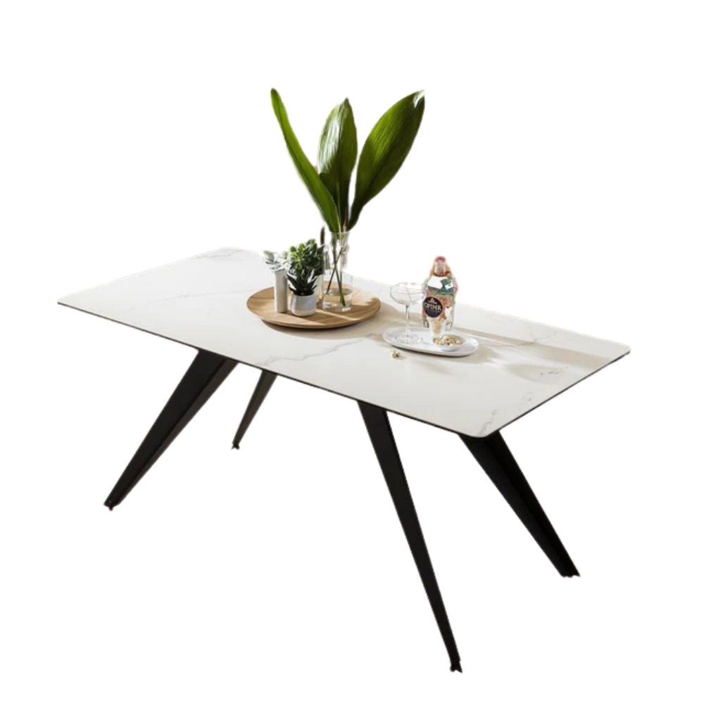 Elegant White-Look Table & Pink Chairs – 6 Seater Ceramic Dining Set