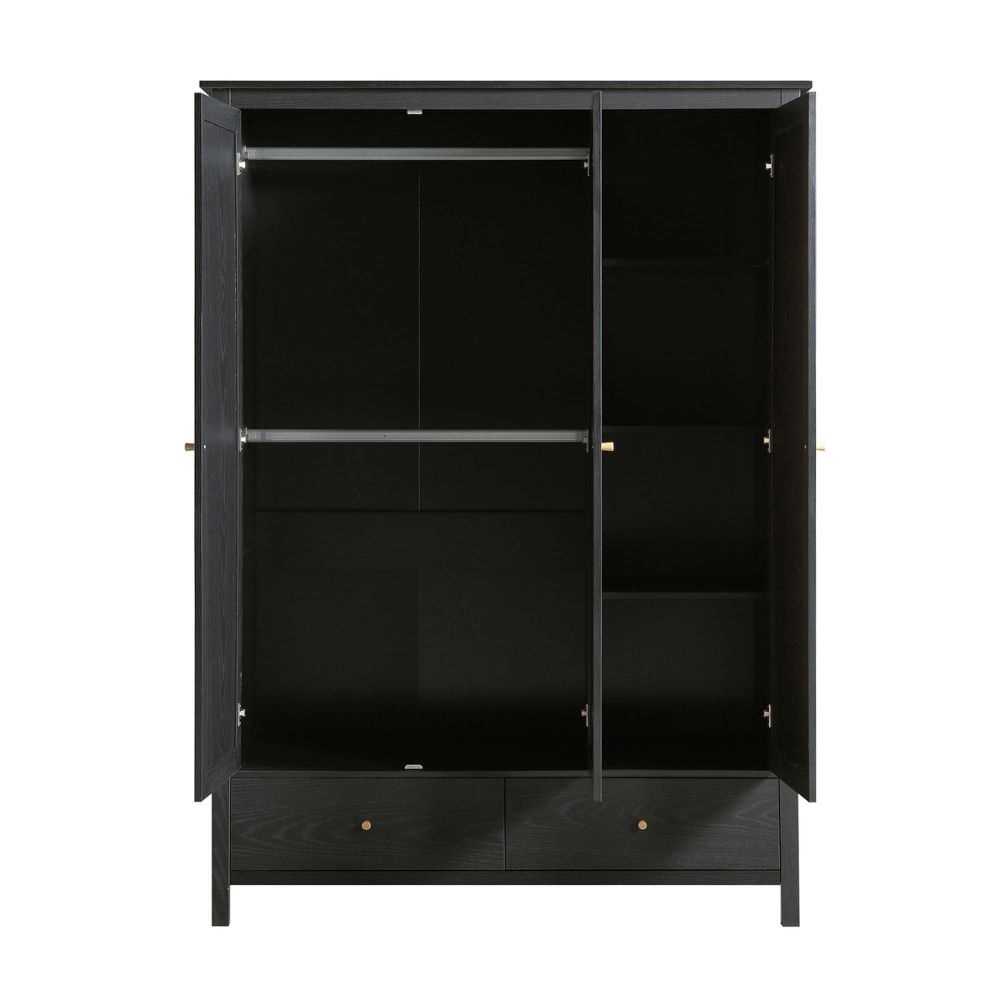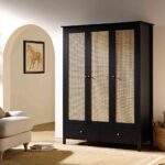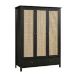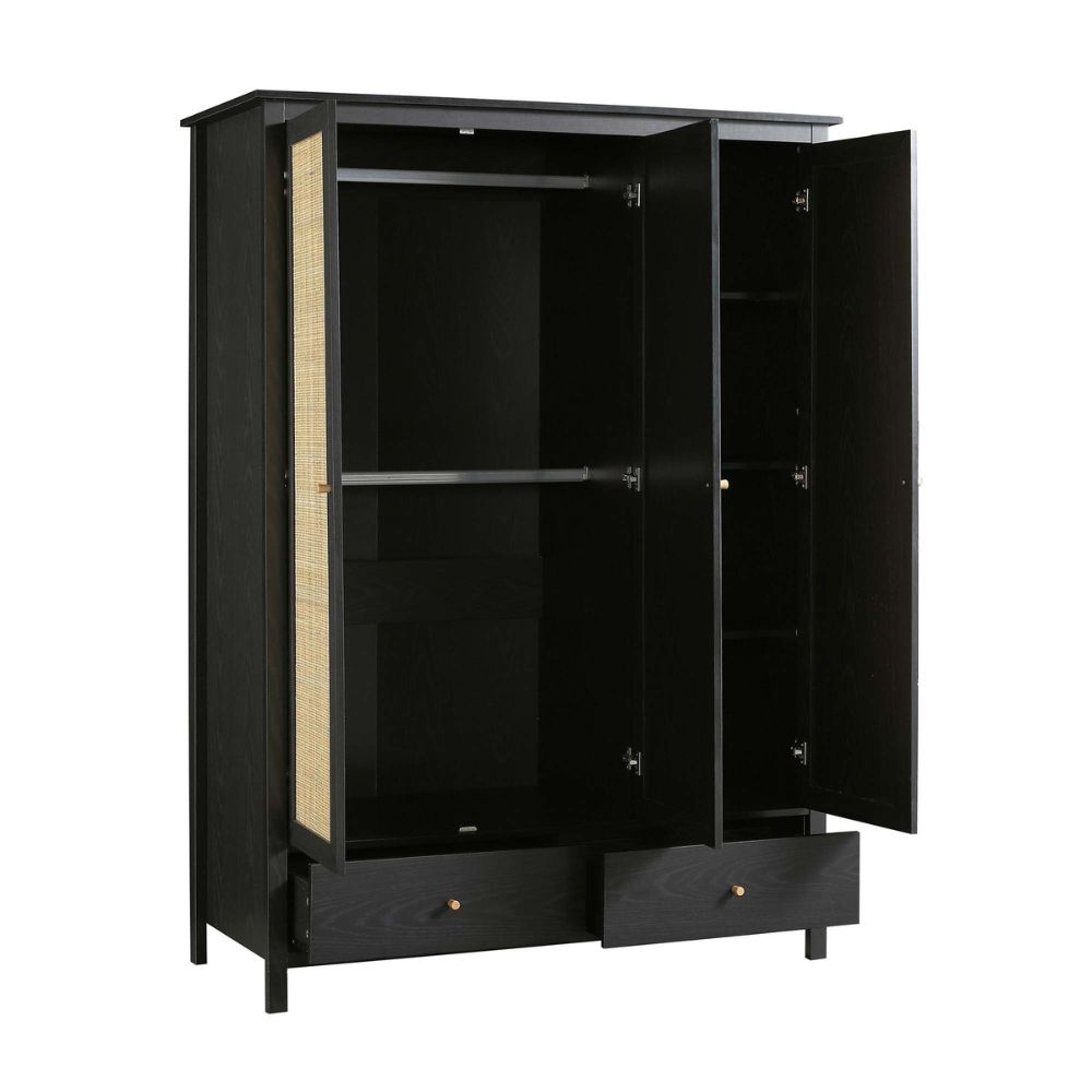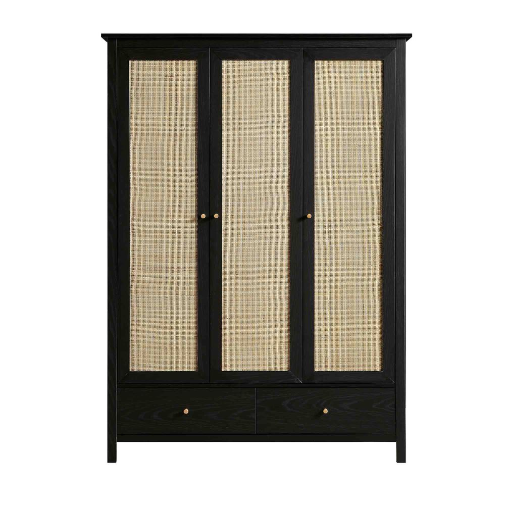 Frances Rattan Triple Closet with 2 Drawers, Black