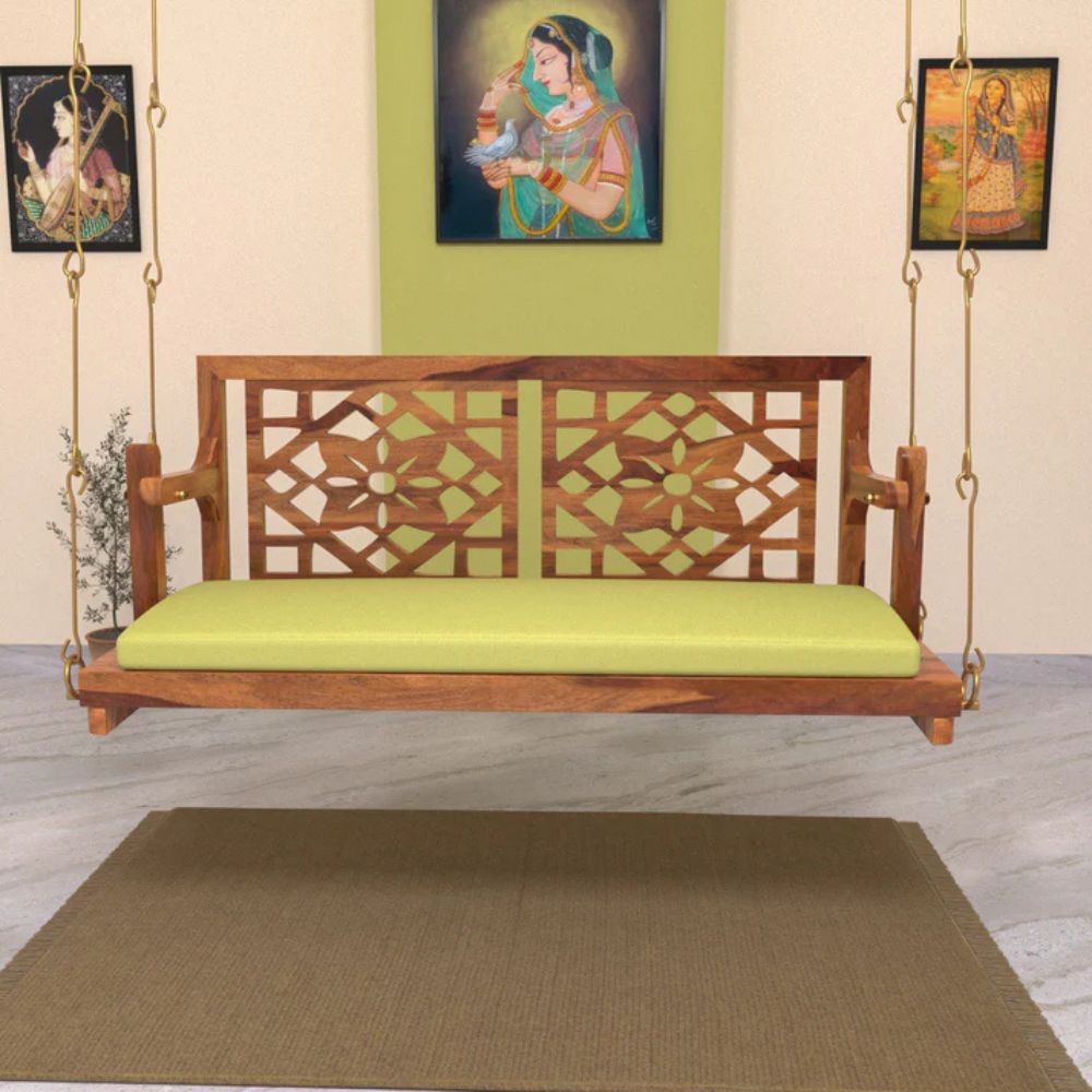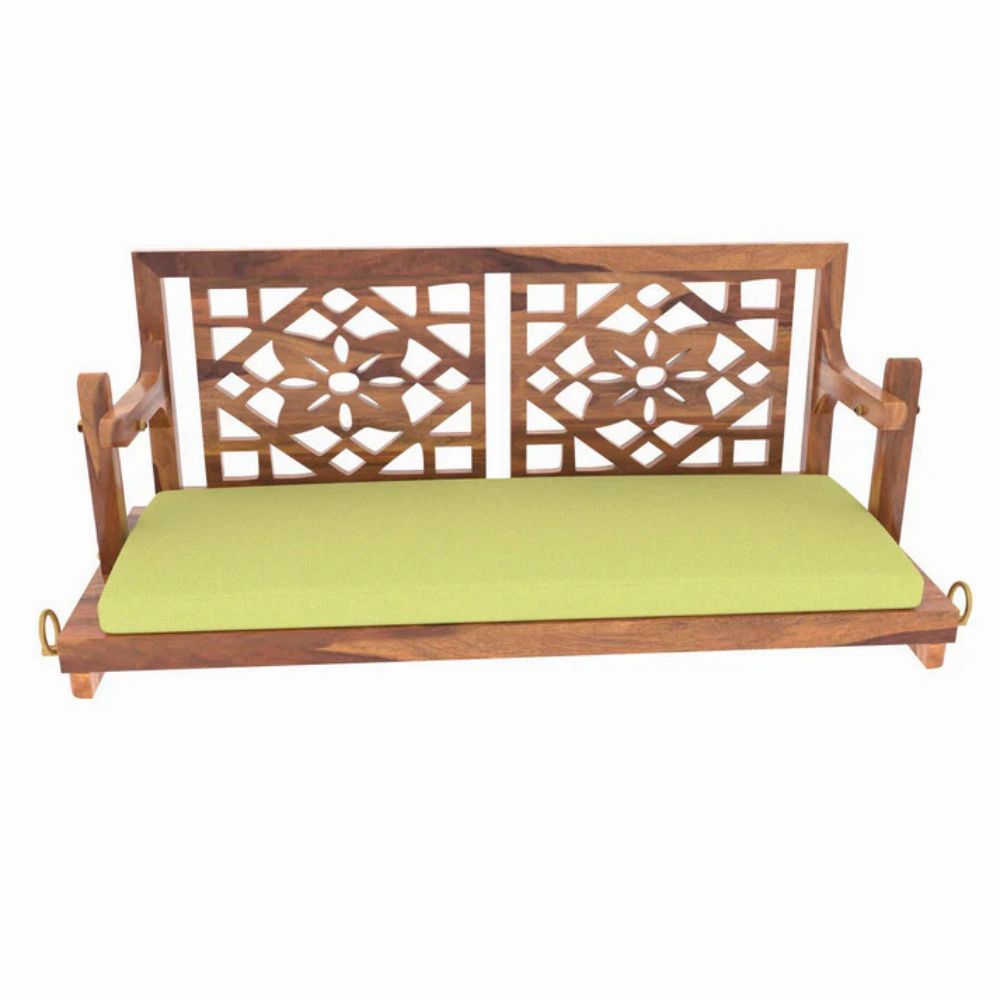 Fusion Flowered Carved Back Handmade Wooden Swing for Home [Jhula]