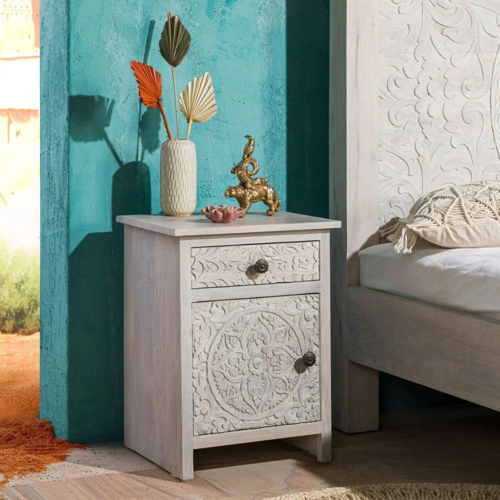 Hand Carved Bedside Table
