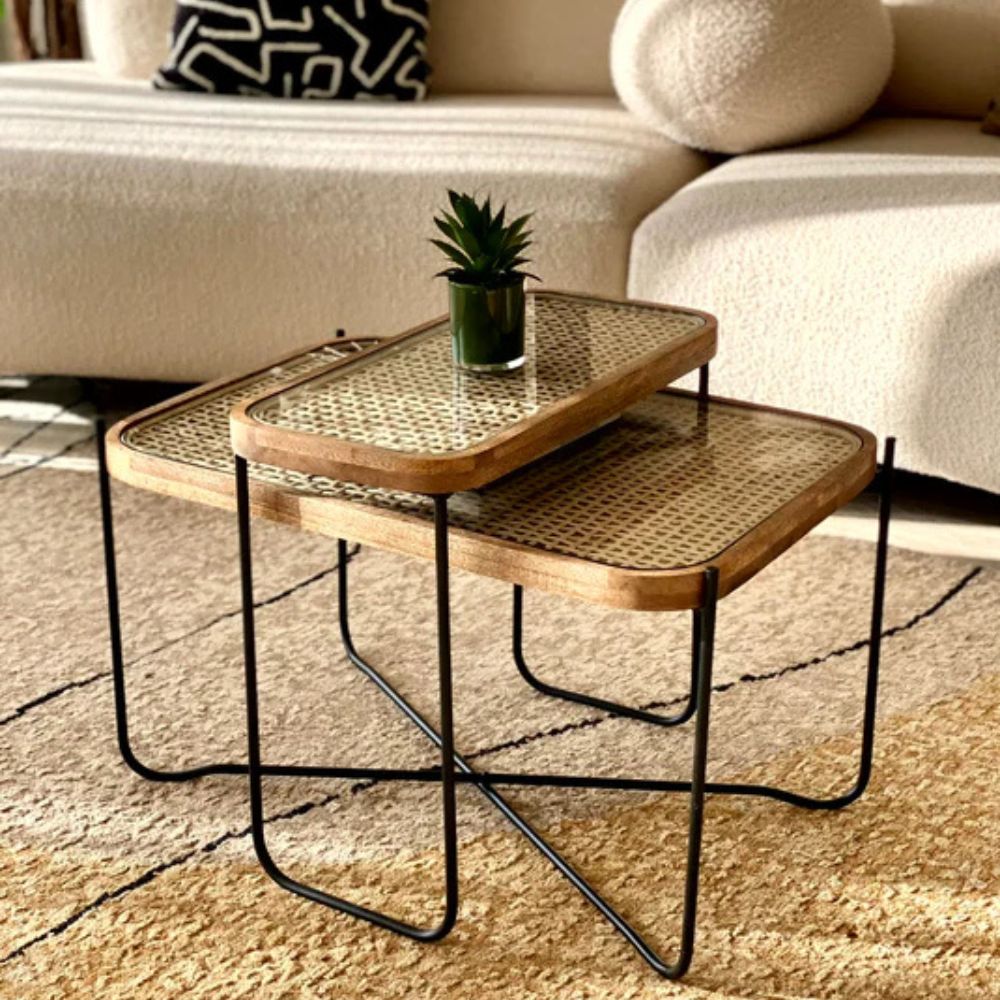 Handcrafted Cane Coffee Table -Set of 2