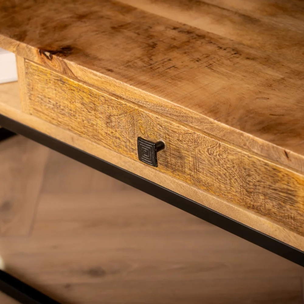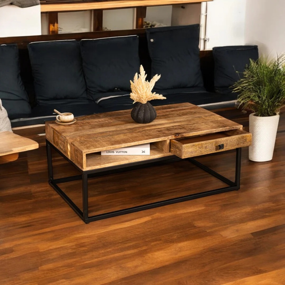 Handcrafted Drawer Natural Mango Wood Coffee Table
