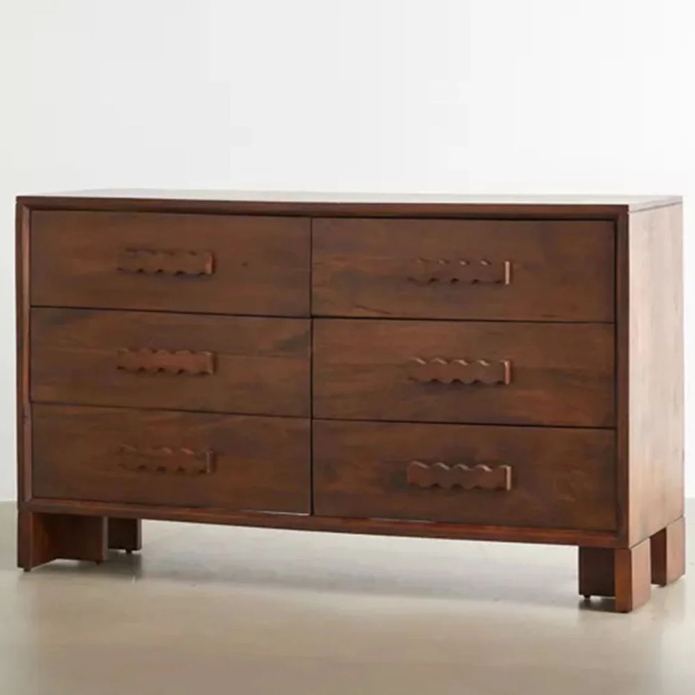Handcrafted Mango Wood Chest Of Drawers In Rustic Brown Finish