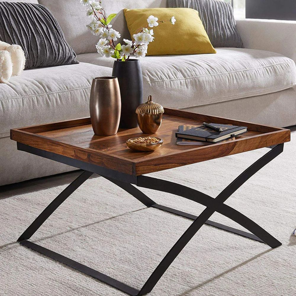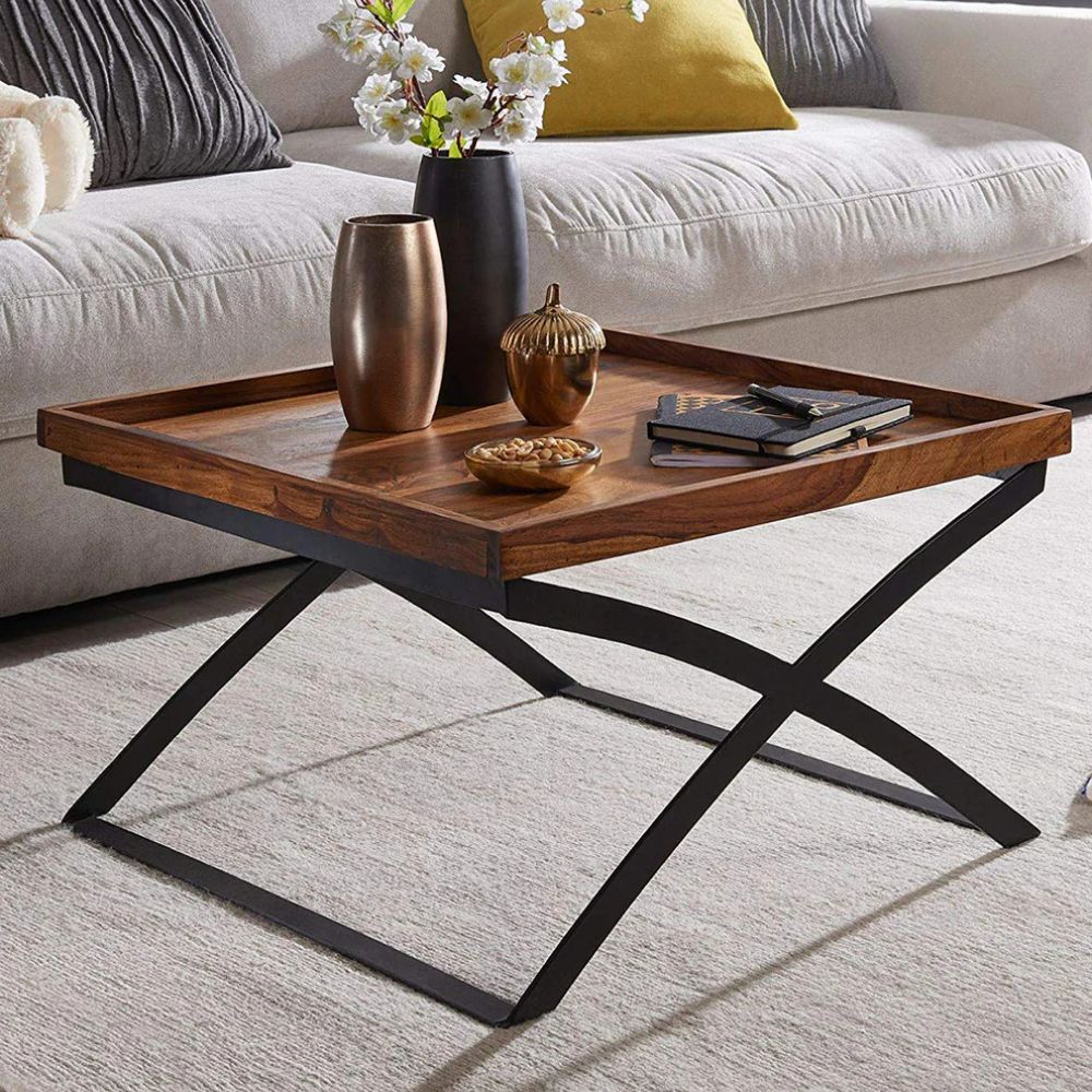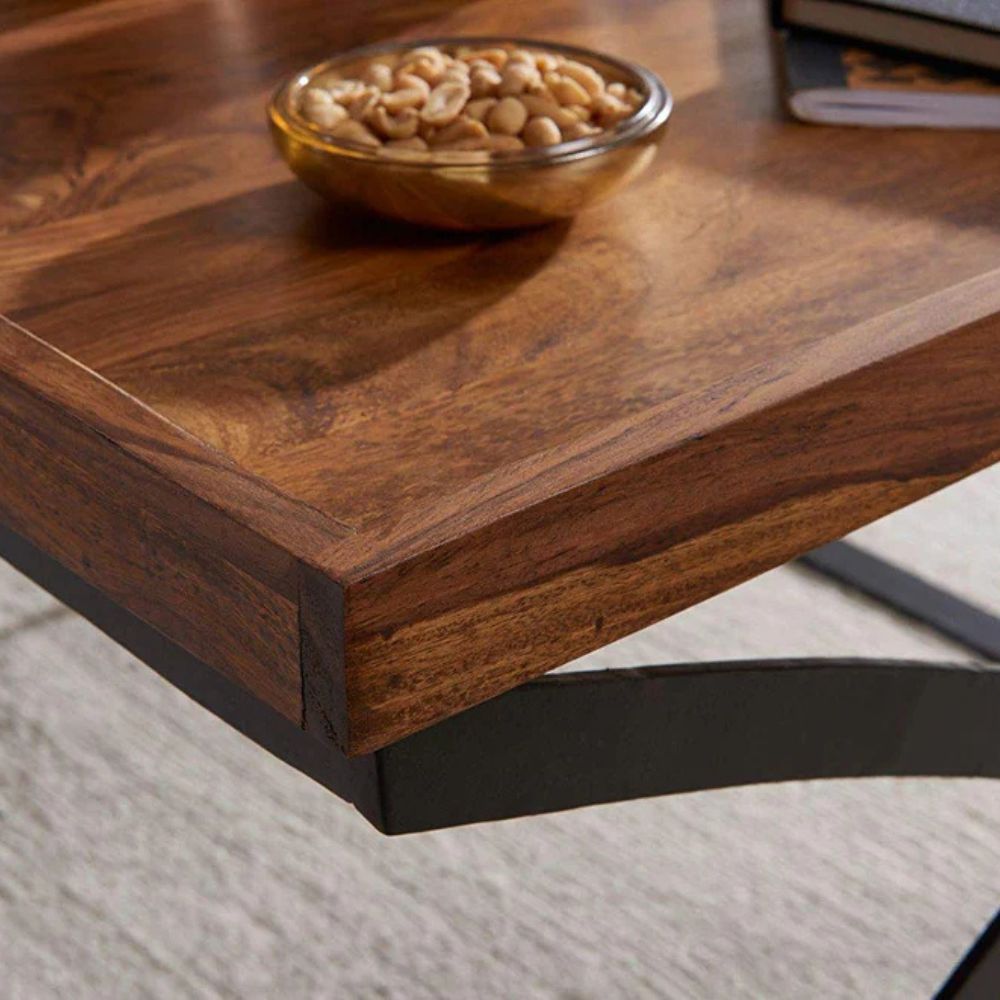 Handcrafted Sheesham Wood & Iron Legs Coffee Table