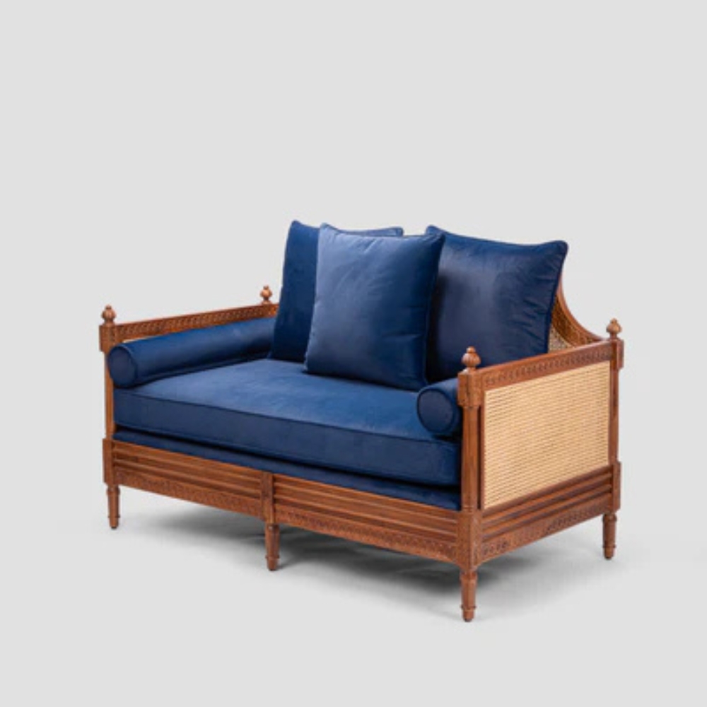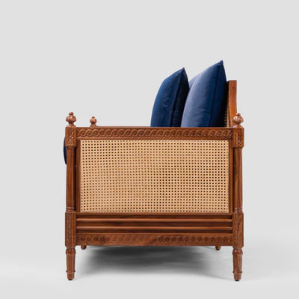 Handcrafted Wooden Curved Cane Sofa