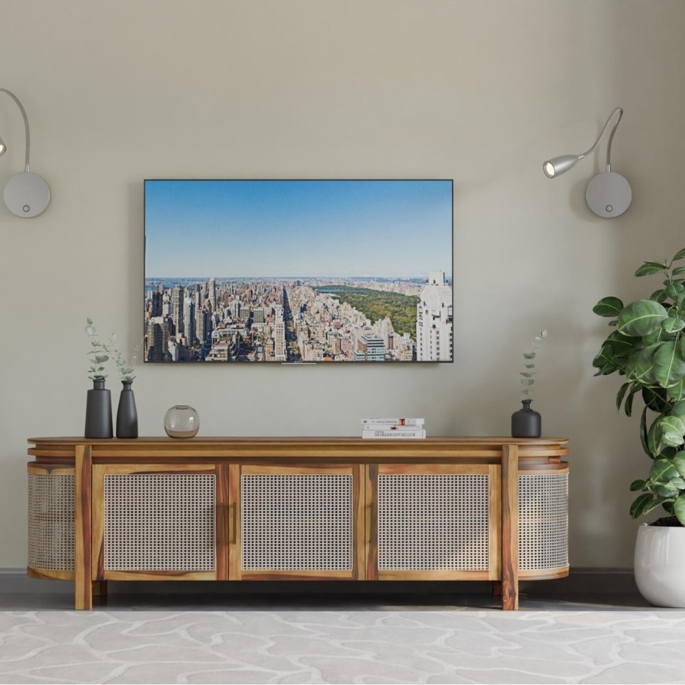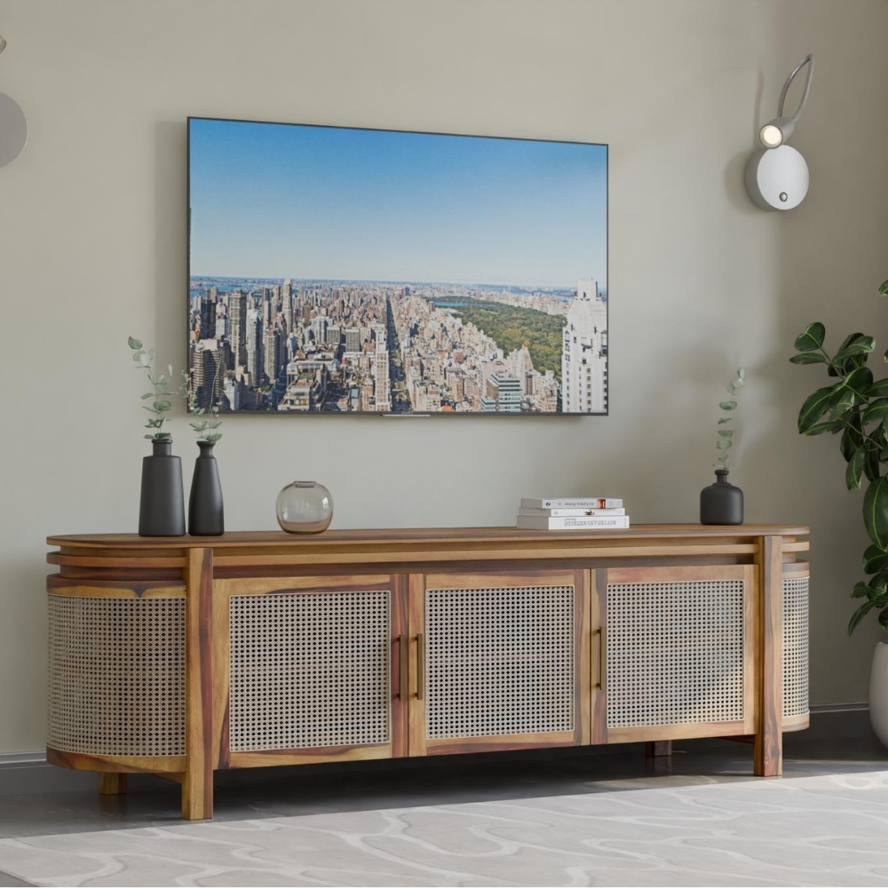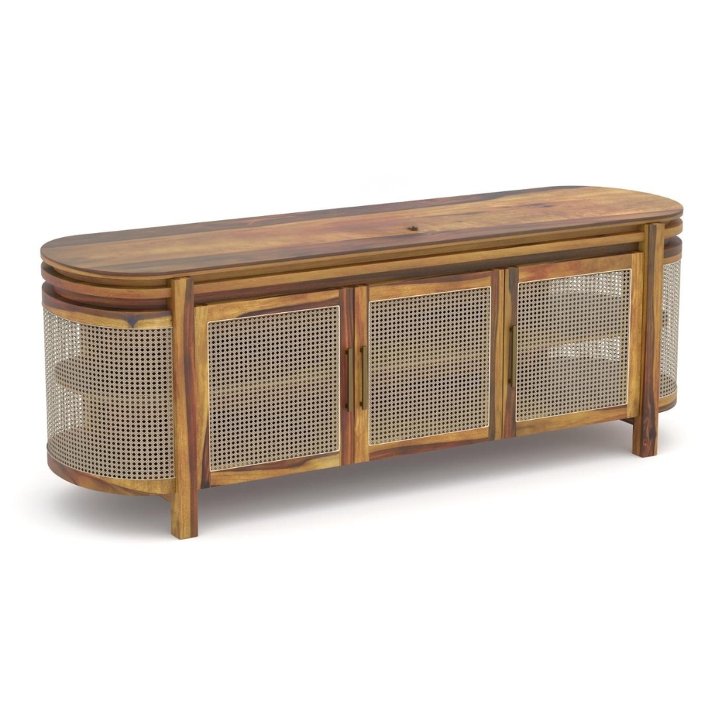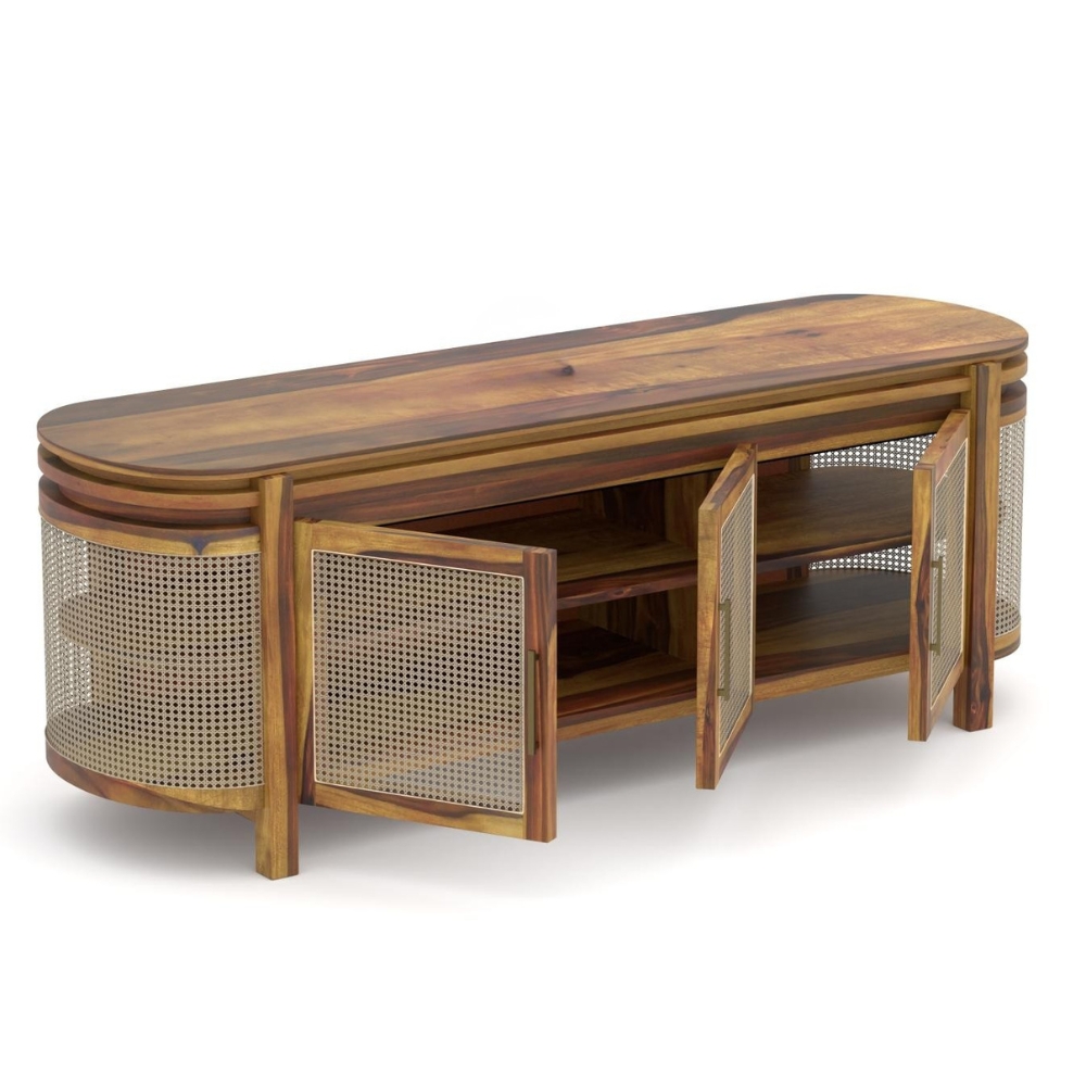 Handcrafted Wooden Tv Cabinet – Natural Sheesham Finish