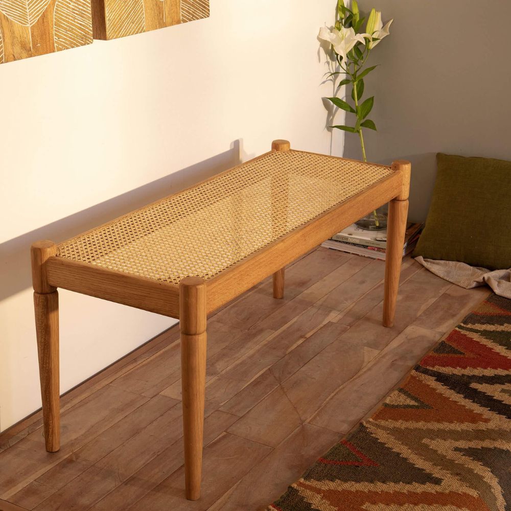 Simple Plain Natural Brown Finished Handmade Wooden Bench