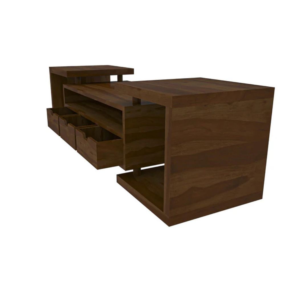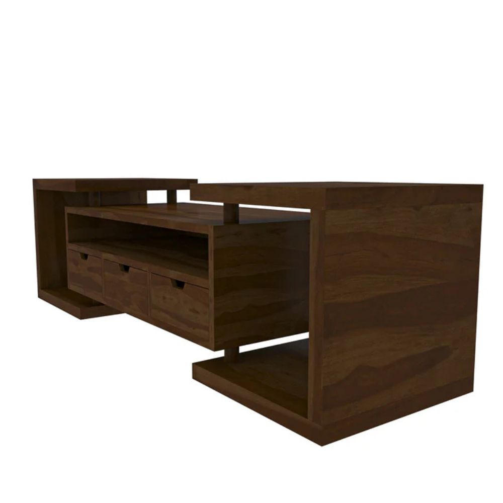 Handmade Charm Finished Wooden Multi-Storage Handcarved TV Unit