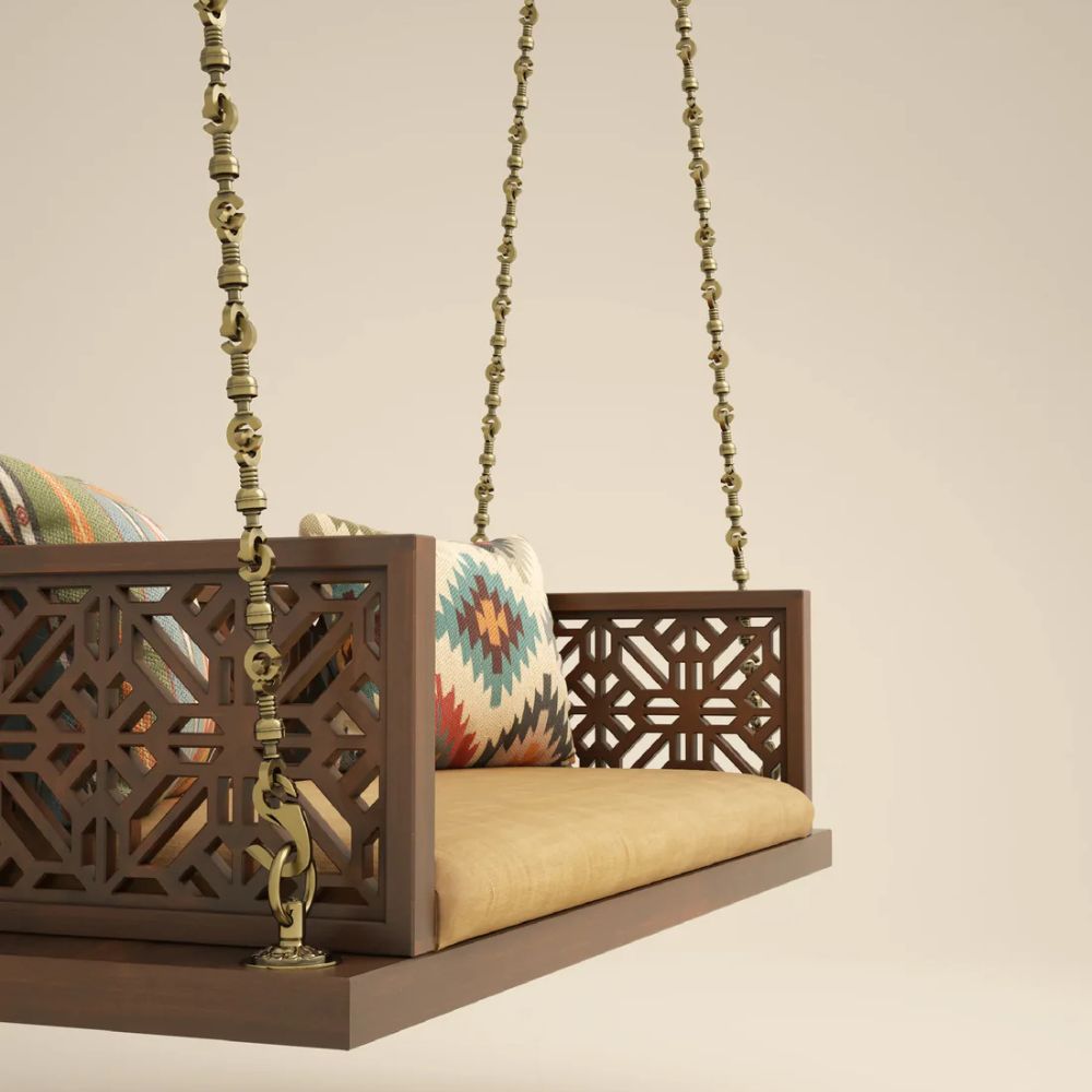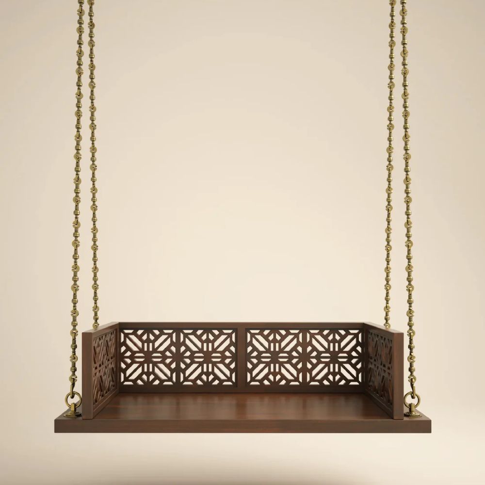 Indian Jhula in Walnut Finished Solid Wood & Brass Chain