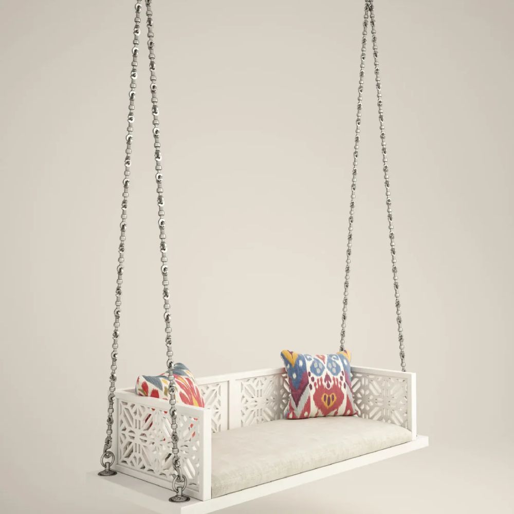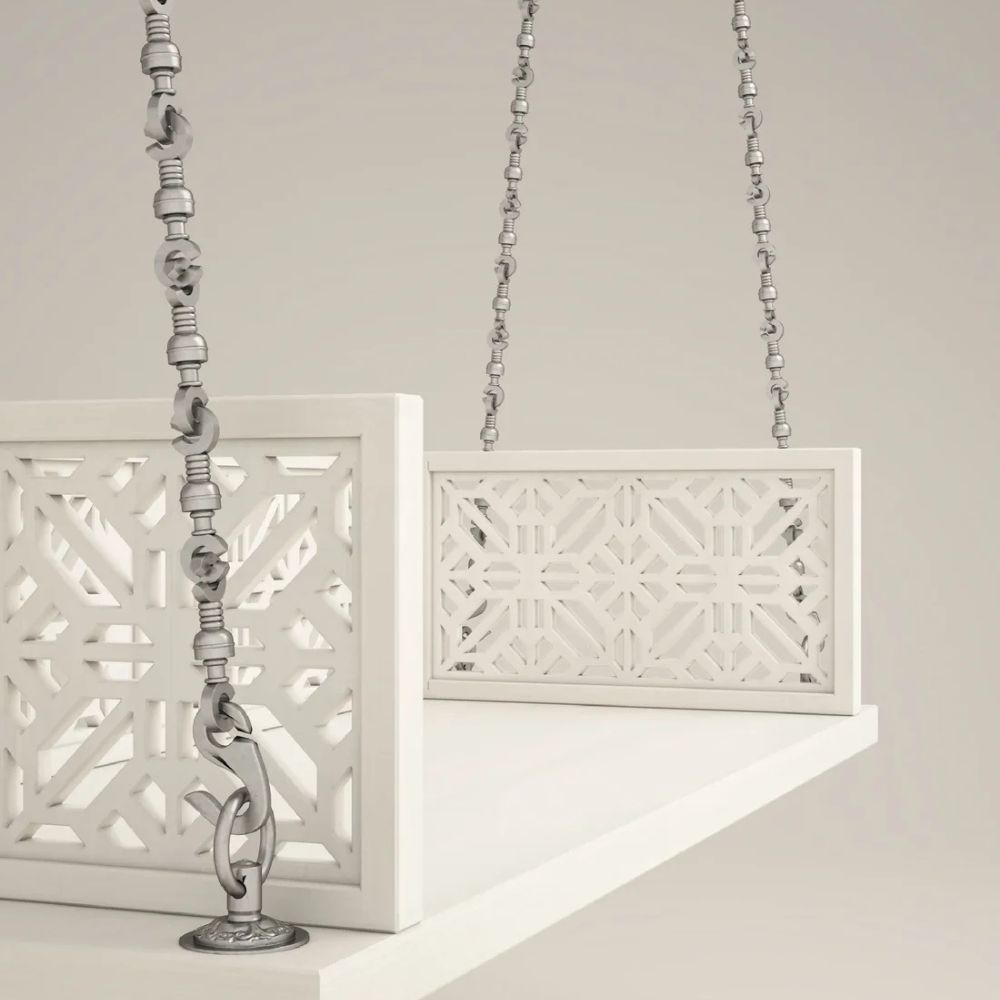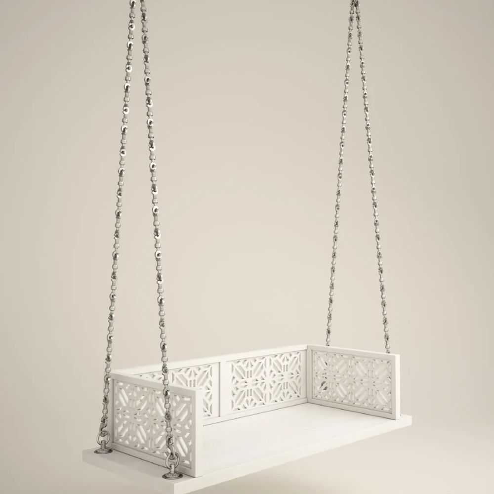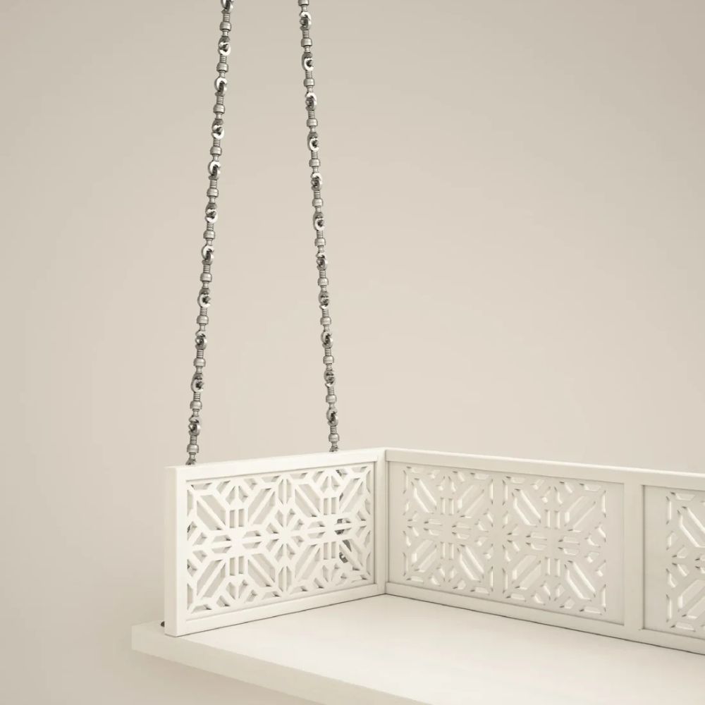Indian Solid Wood In Pristine White PU with Traditional Silver Finished Brass Chain