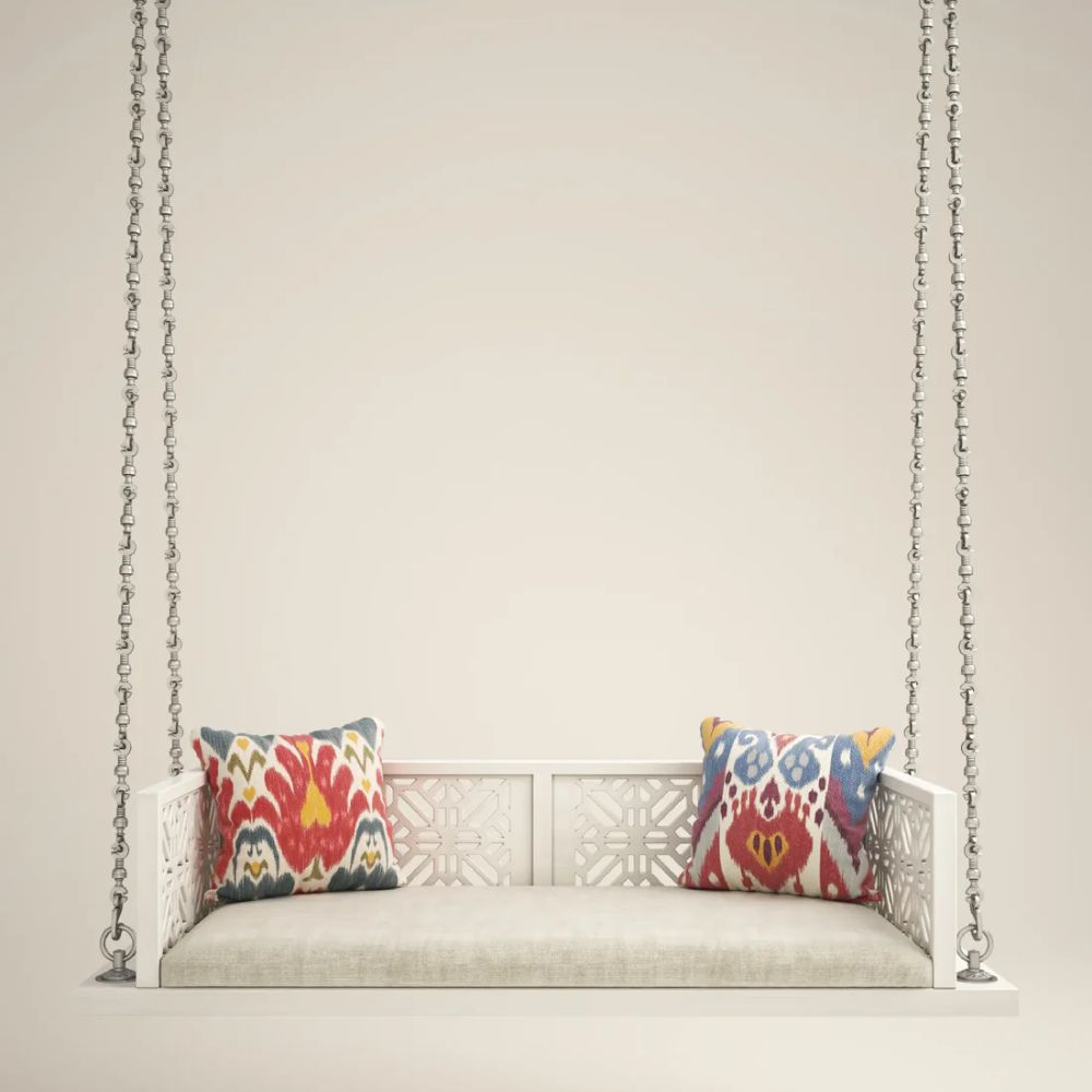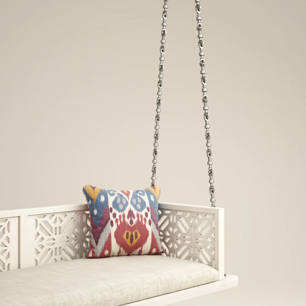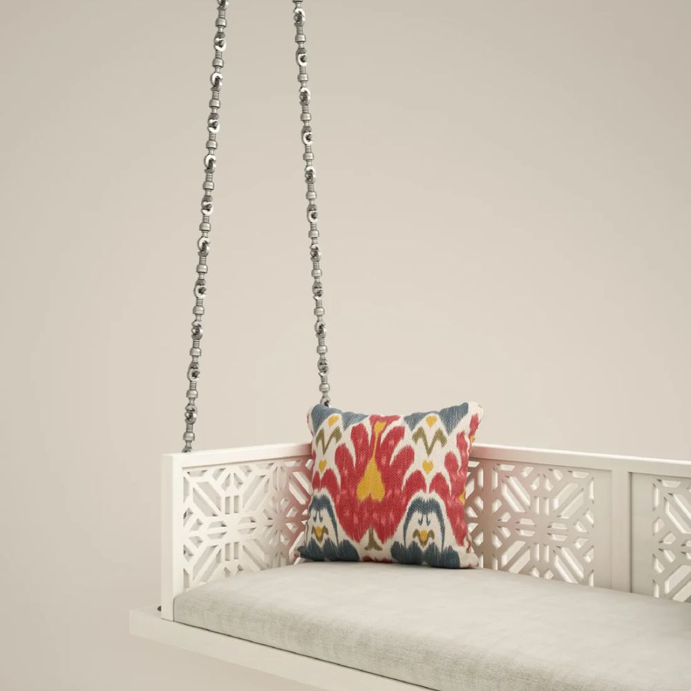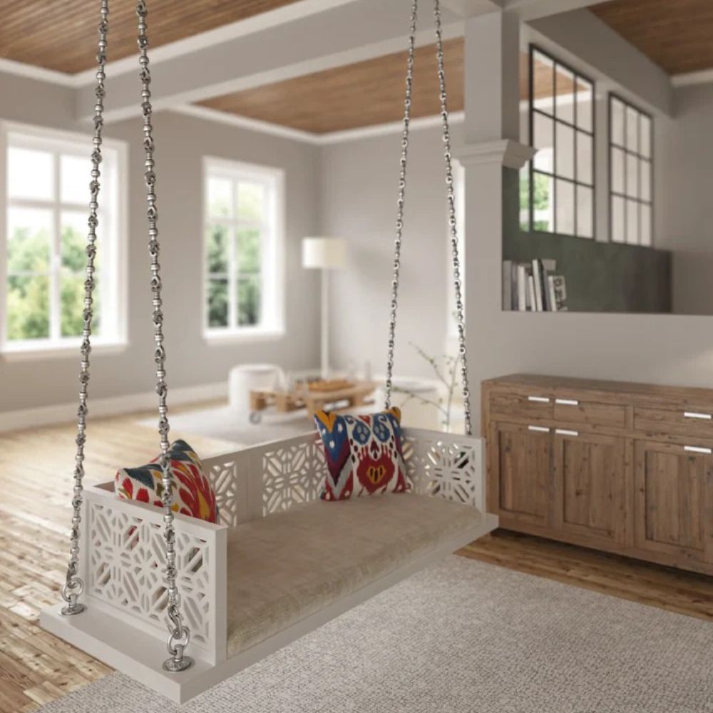 Indian Solid Wood In Pristine White PU with Traditional Silver Finished Brass Chain