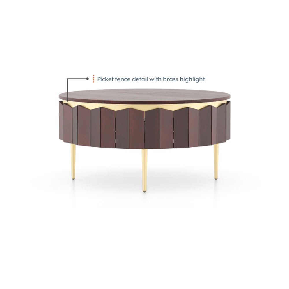Keoni Round Solid Wood Coffee Table in Claret Mahogany Finish