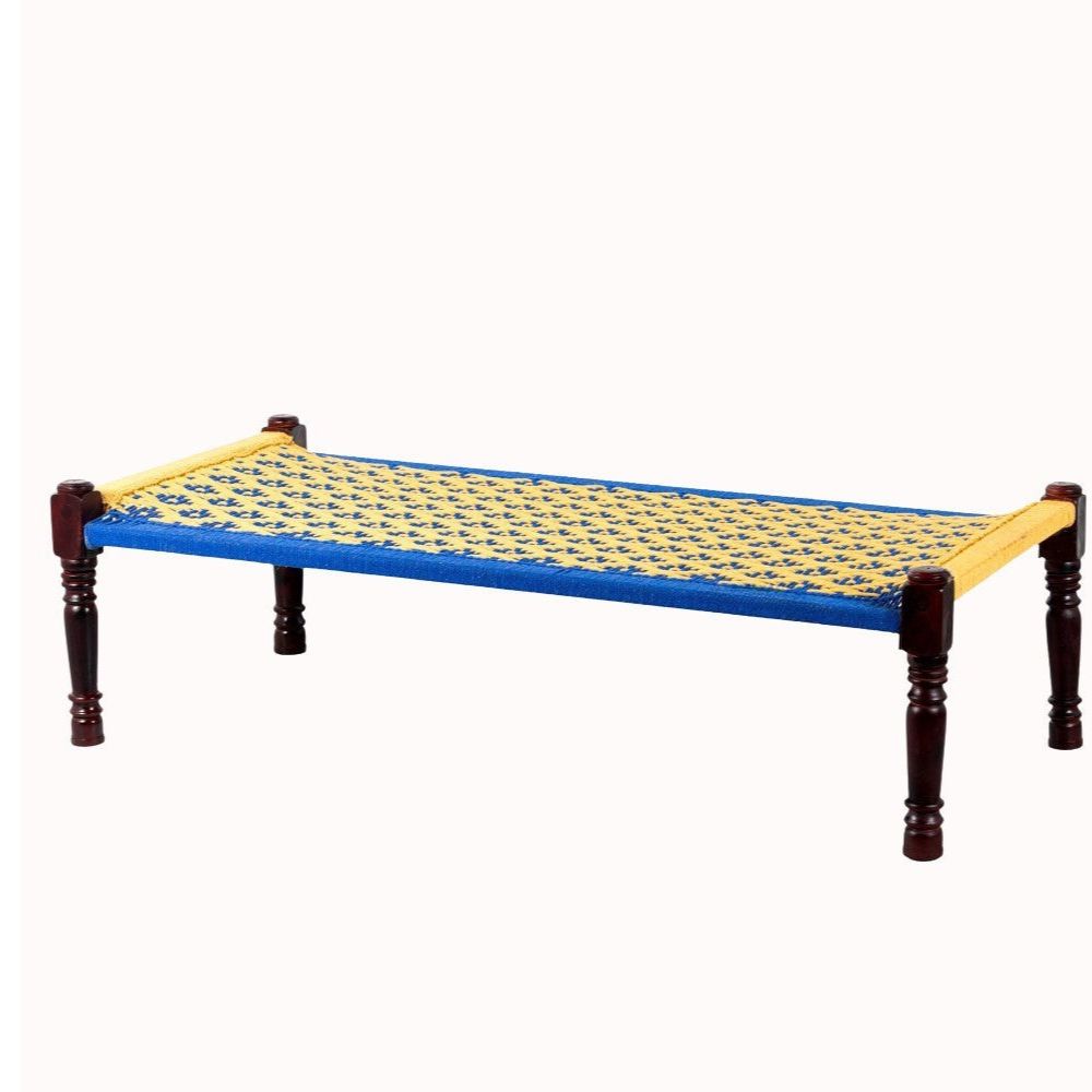 Jodhpuri Wooden Khatiya Khaat (Yellow Blue)