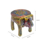 Mehendi Green Handpainted Wooden Elephant Stool