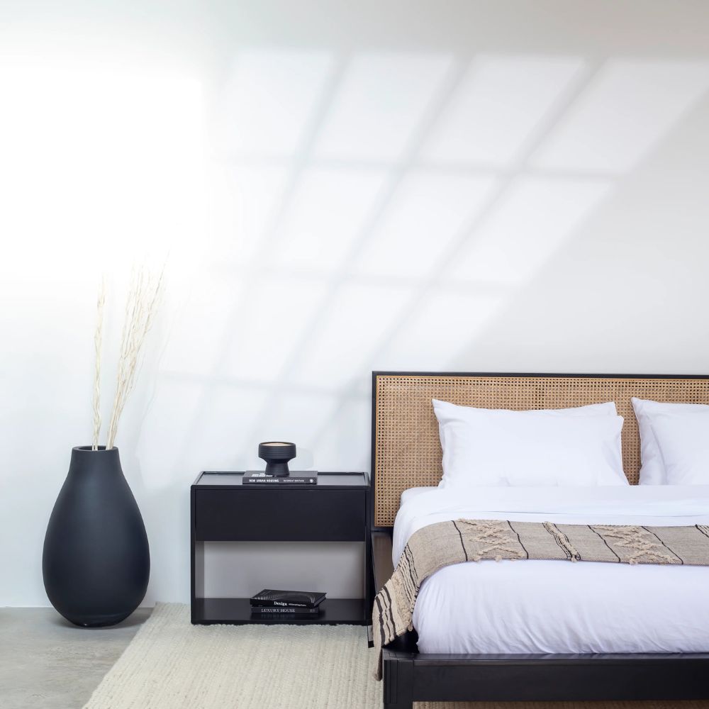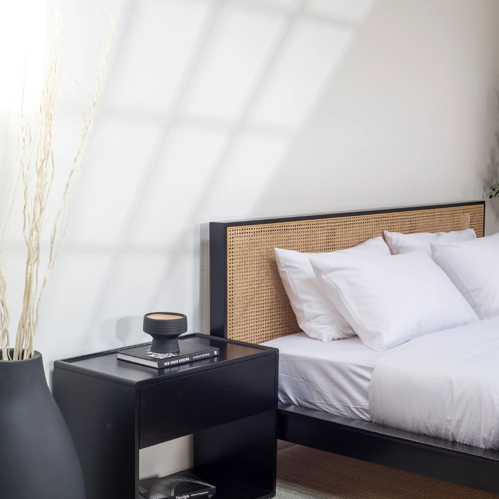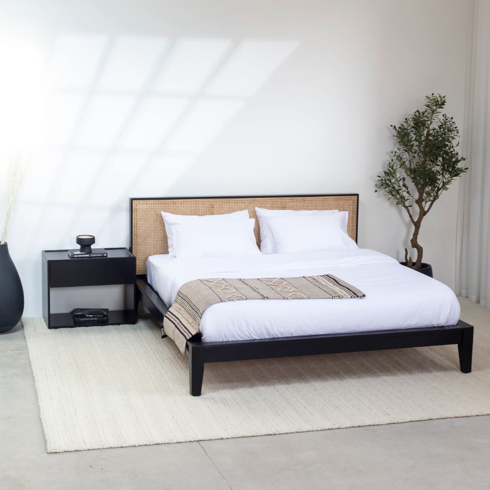 Midori Rattan Black Wood Joinery Bed