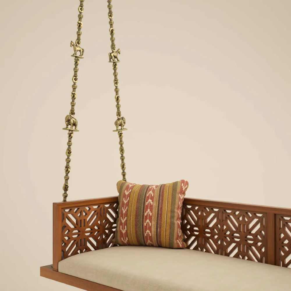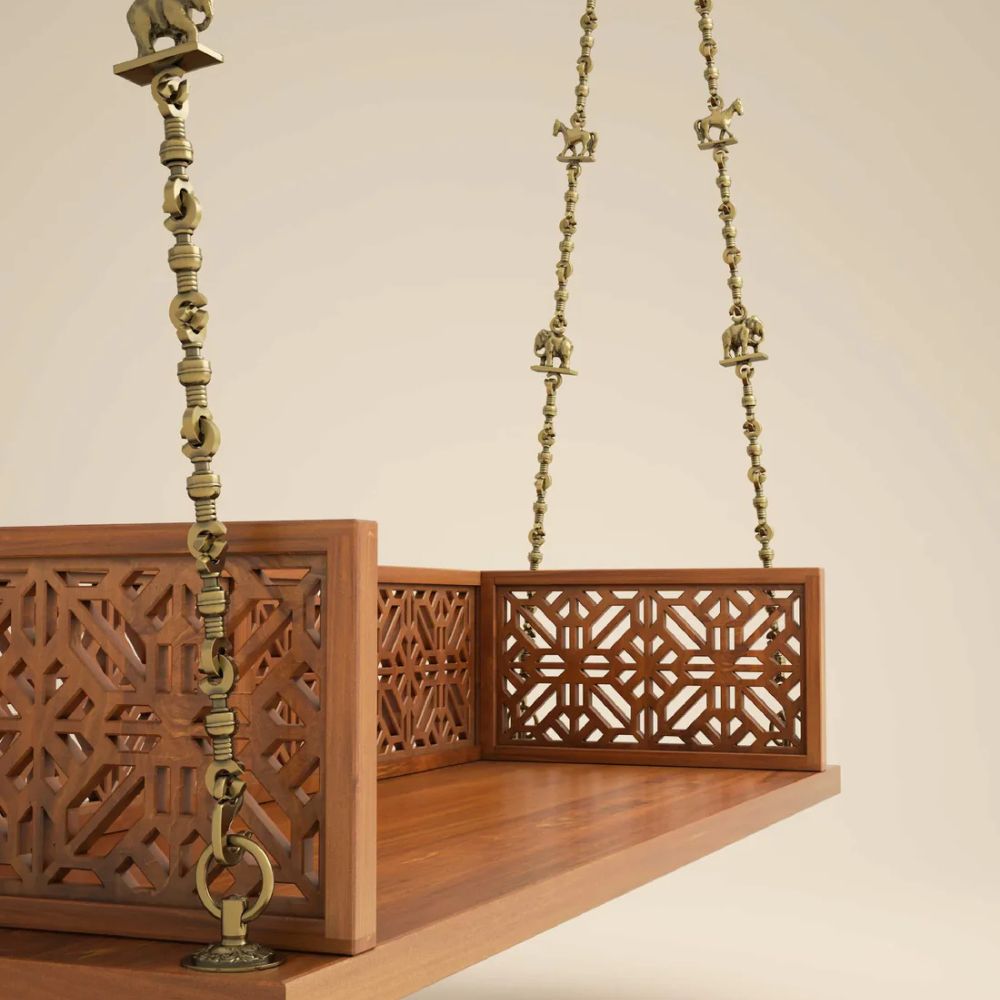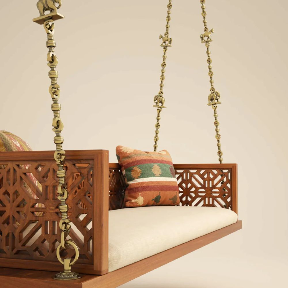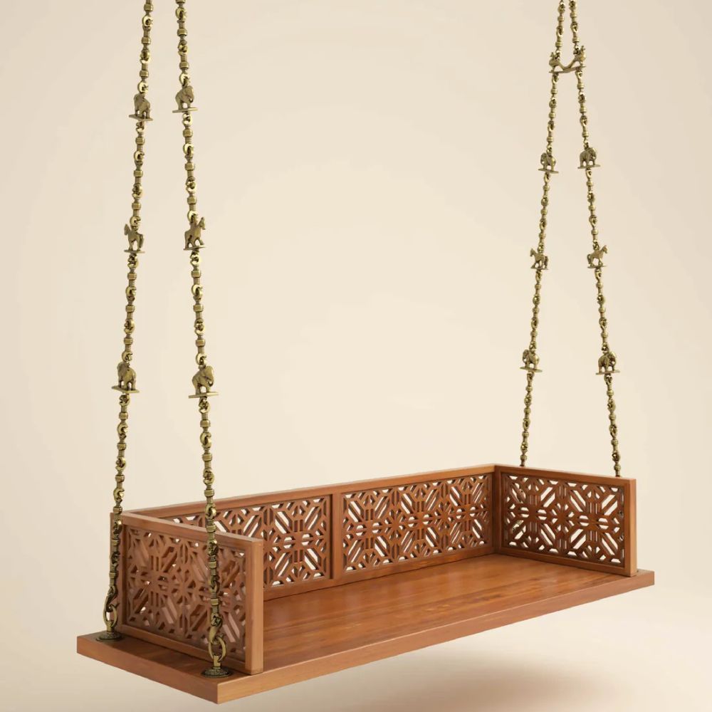 Solid Wood Swing with Traditional Brass Animal Motif Chain Links