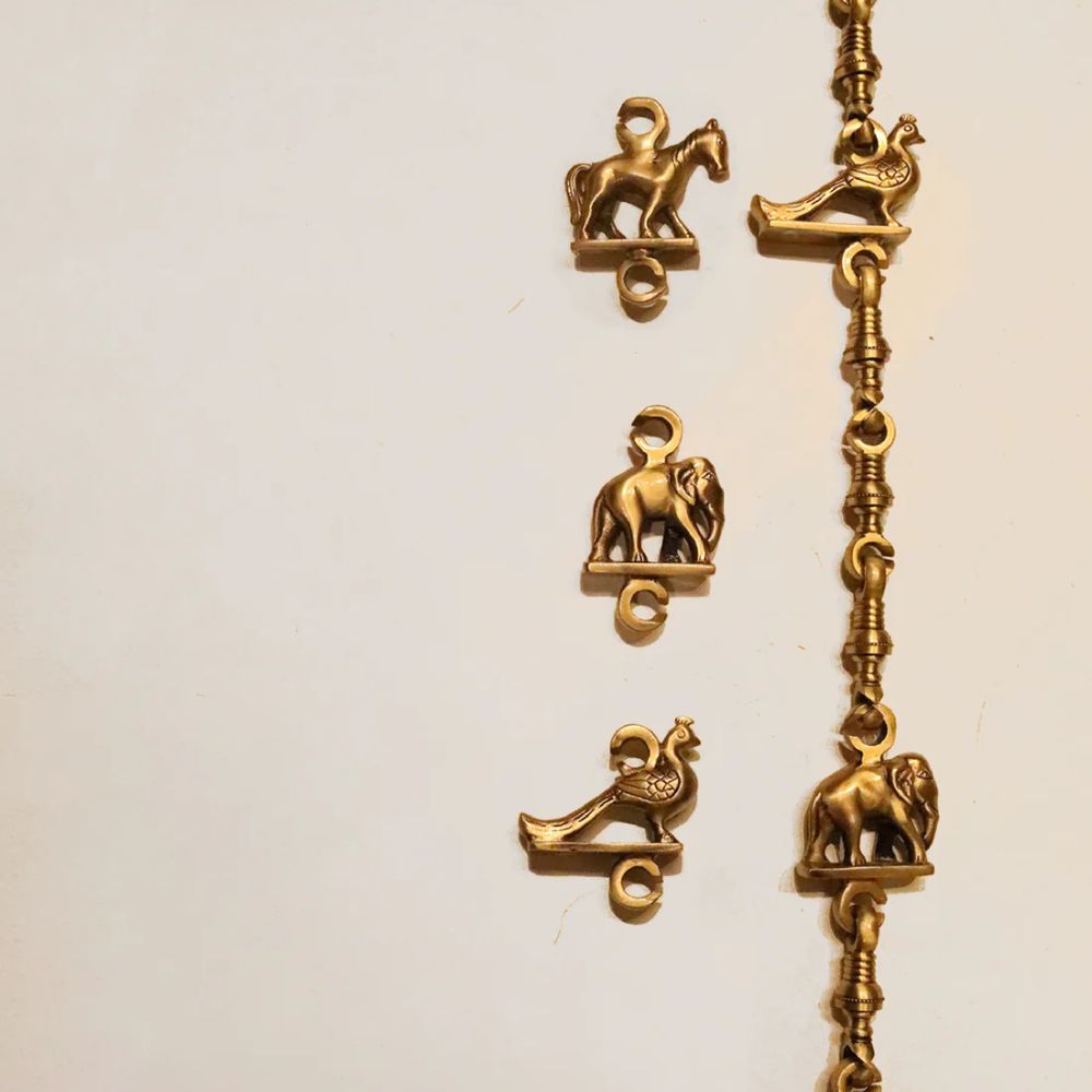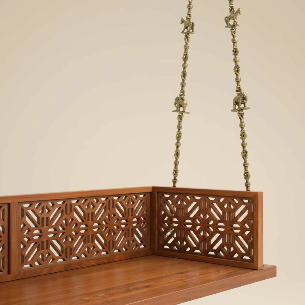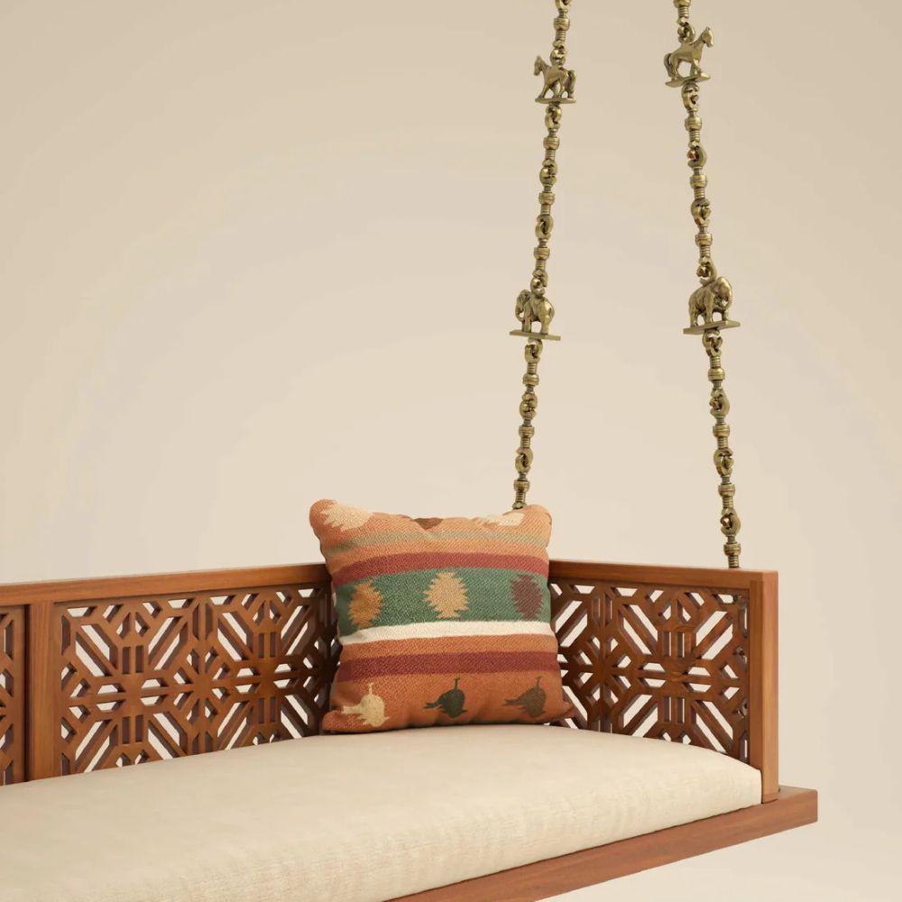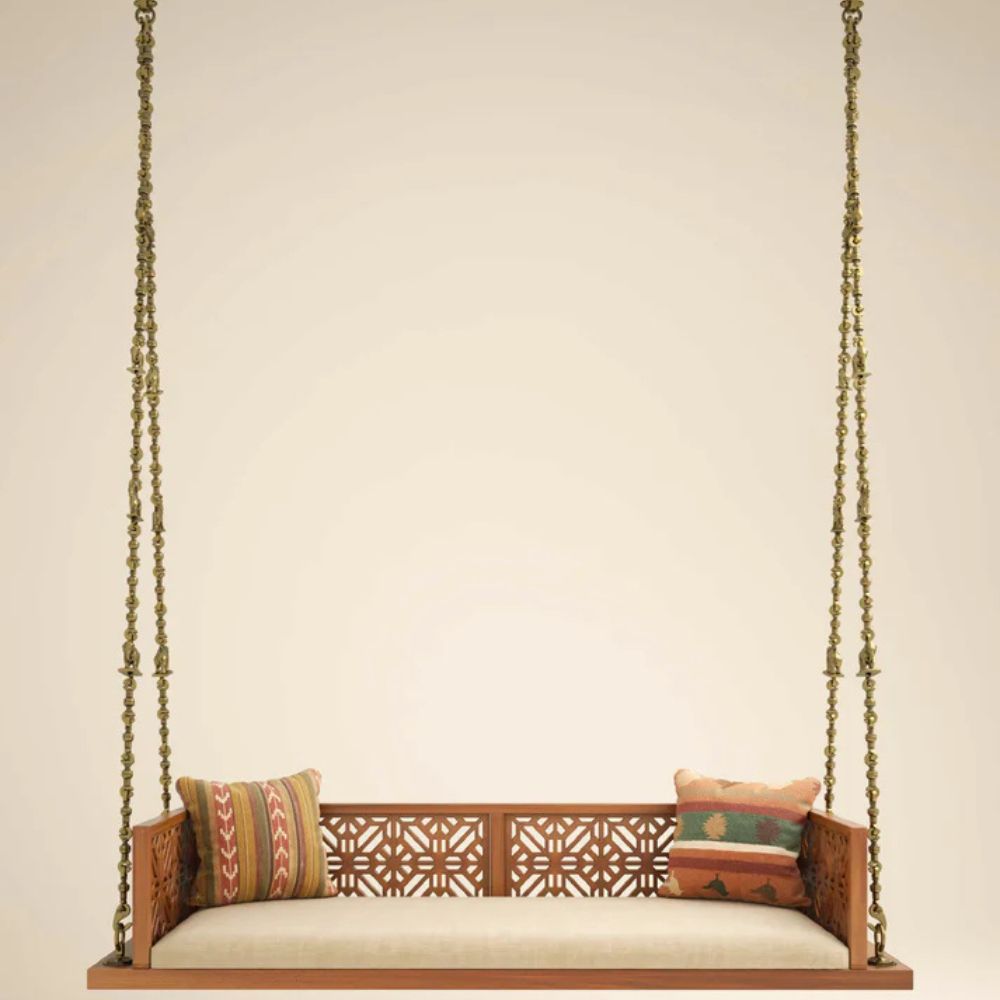 Solid Wood Swing with Traditional Brass Animal Motif Chain Links