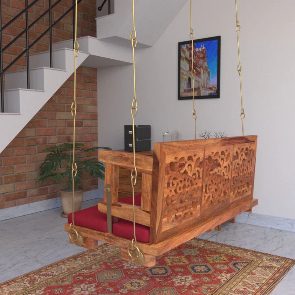 Luxurious Premium Tiled Handmade Wooden Swing for Home [Jhula]