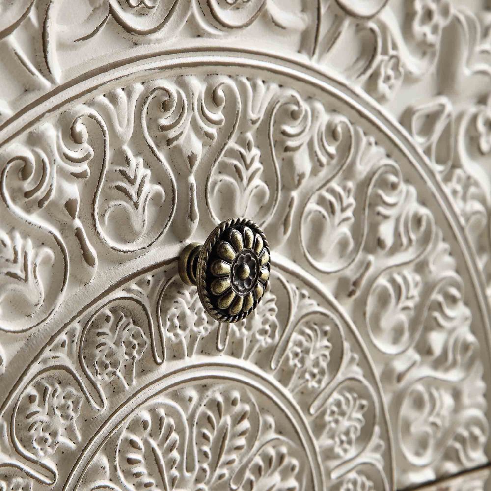 Whitewashed Carved 2 Drawer Nightstand