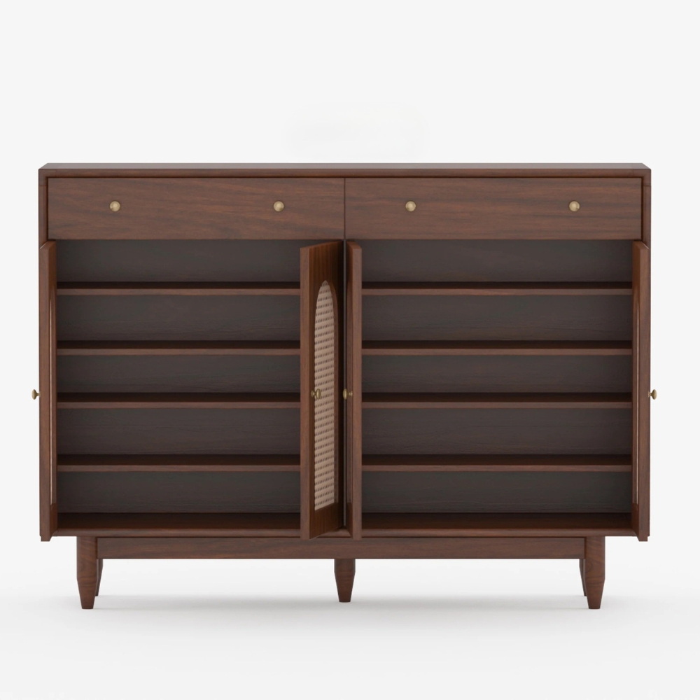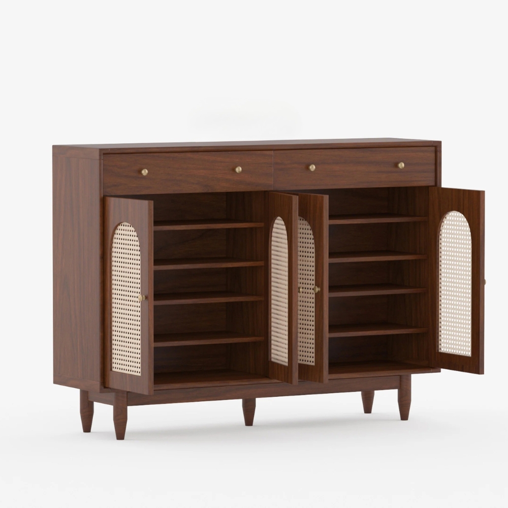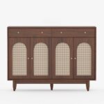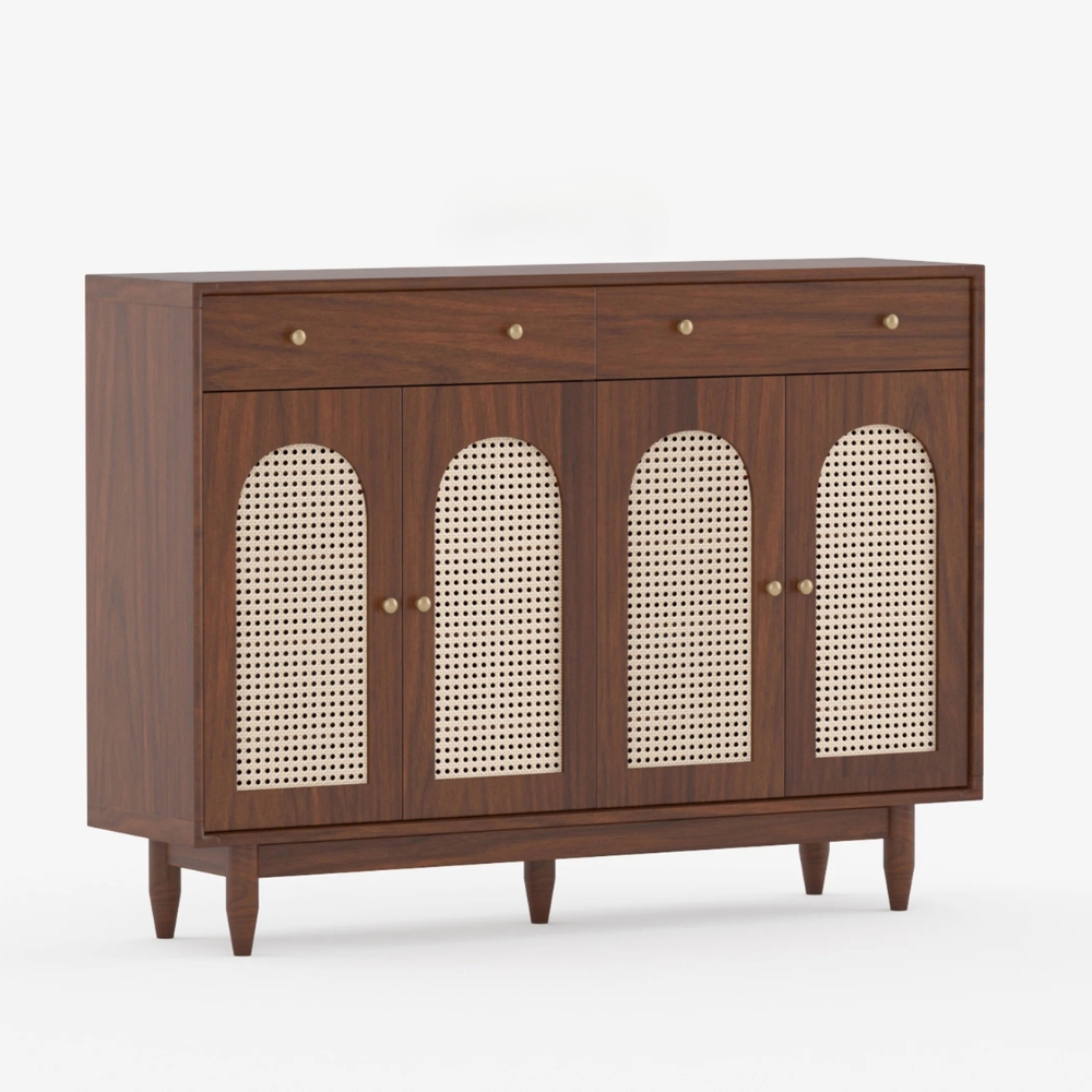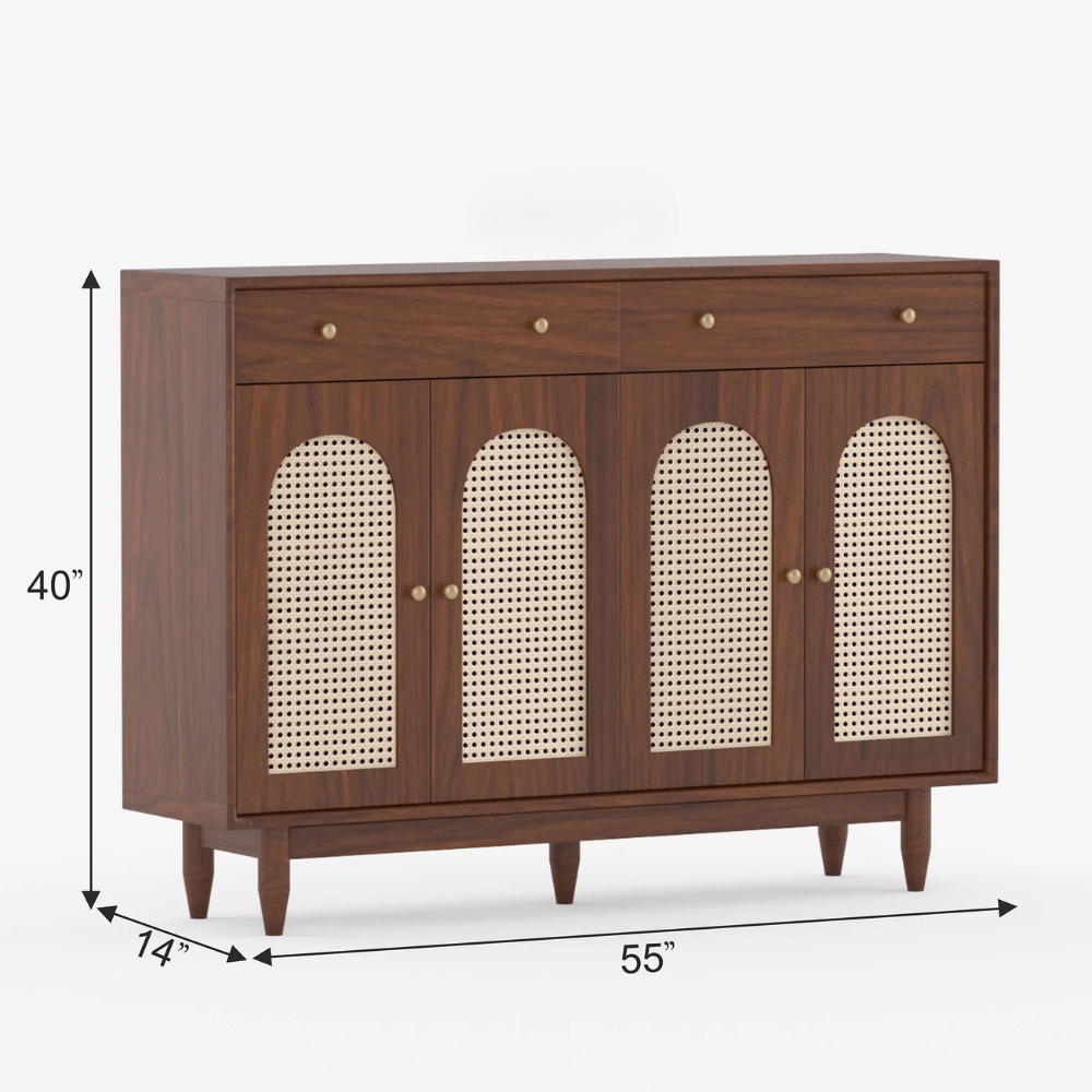 Wooden 2-Door Storage Sideboard with Cane 2 Drawer
