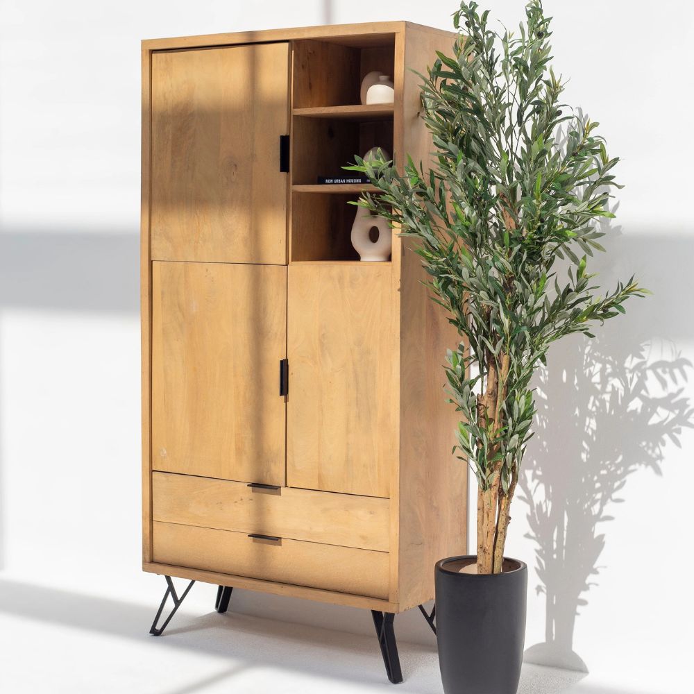 Wooden Cabinet with Mini Display Shelves