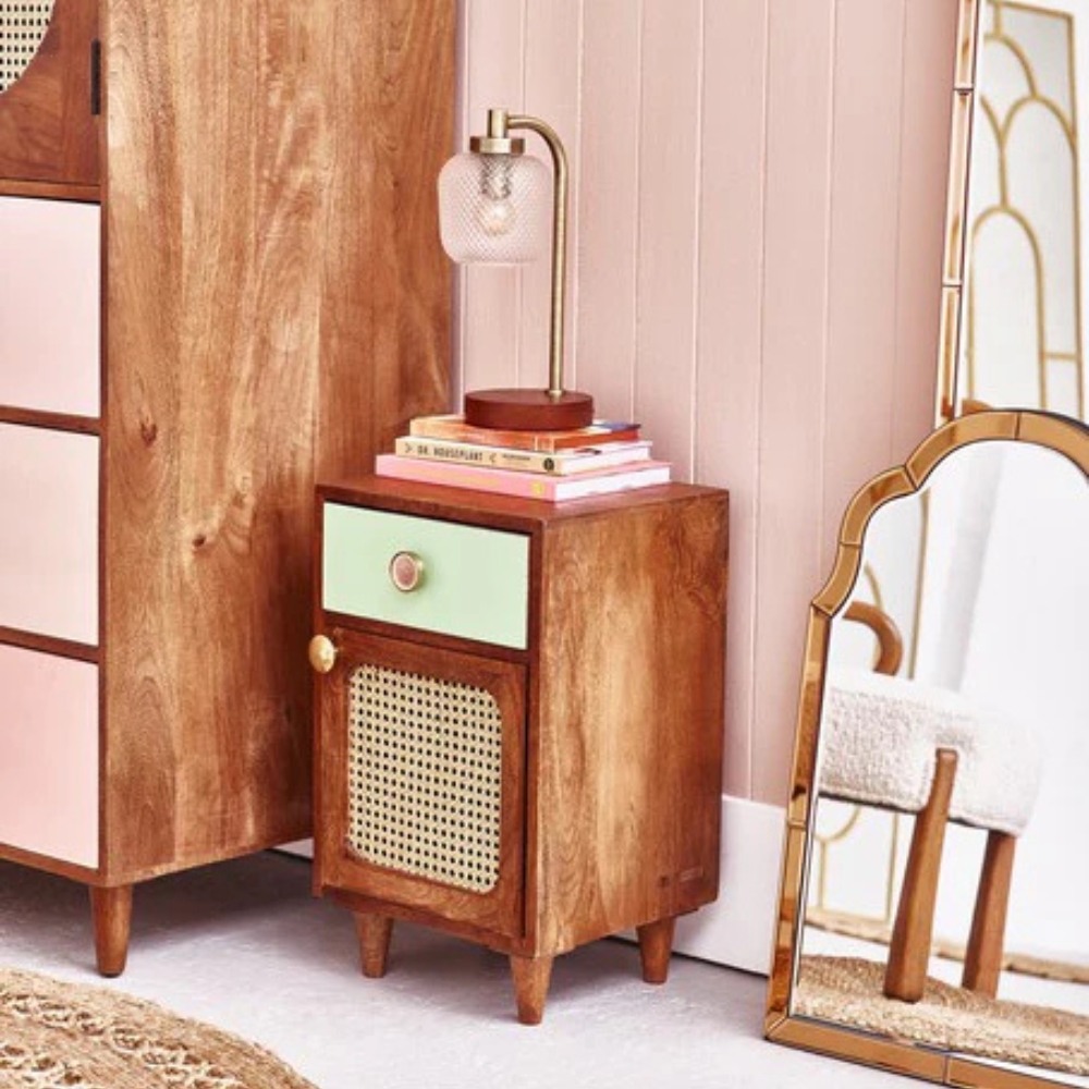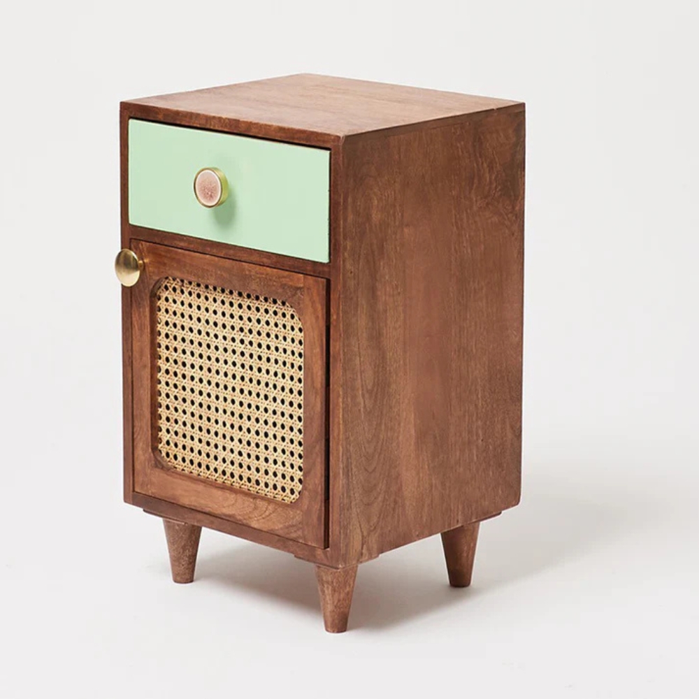 Wooden Cane 1 Drawer Bedside Table