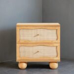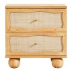 Wooden Cane 2 Drawer Bedside Table