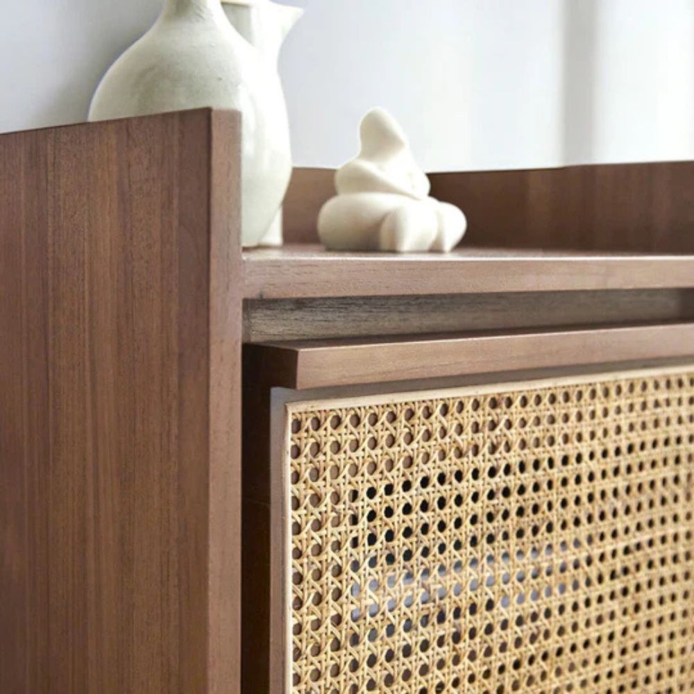 Wooden Cane Bedside Table