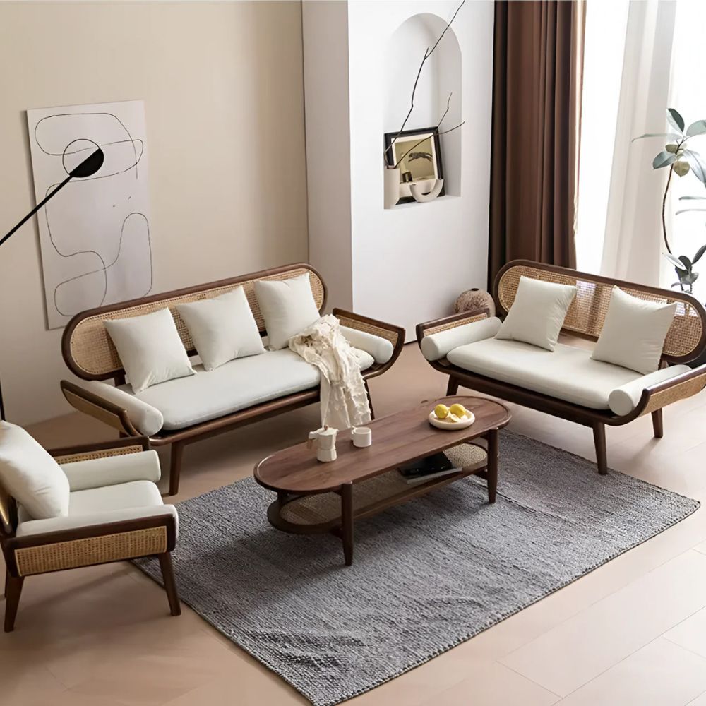 Wooden Cane Handcrafted Carving Sofa
