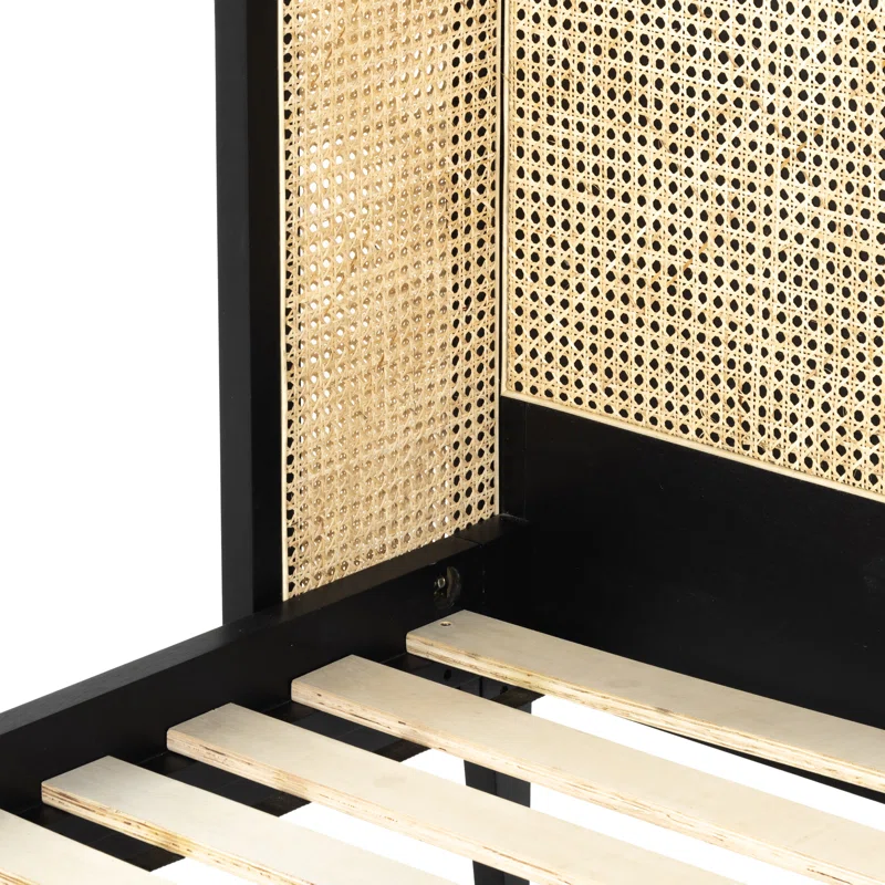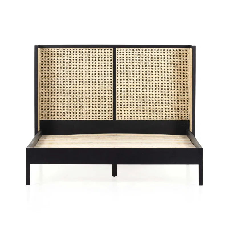 Jodhpuri Joinery Rattan Dark Wood Bed