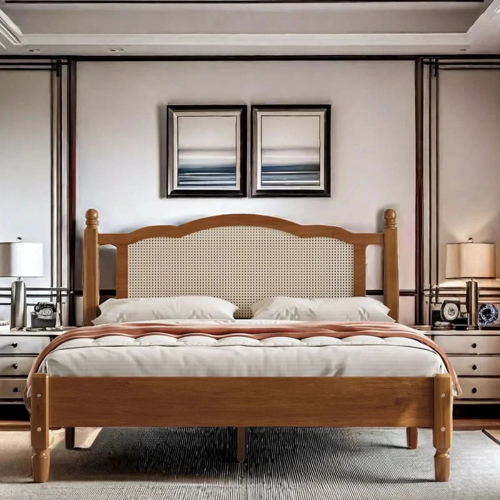 Hinata Japanese Joinery Boucle Light Wood Bed