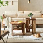 Wooden Side Table & Coffee Table with Storage Shelf for Living Room