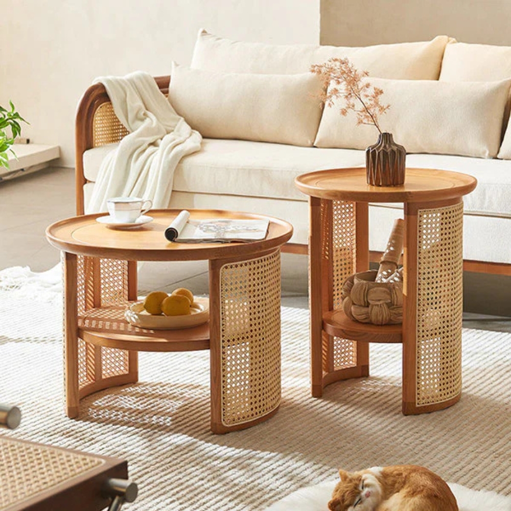 Jaipuri Coffee Table | Cane Round Table | Rattan Stool | Coffee Table
