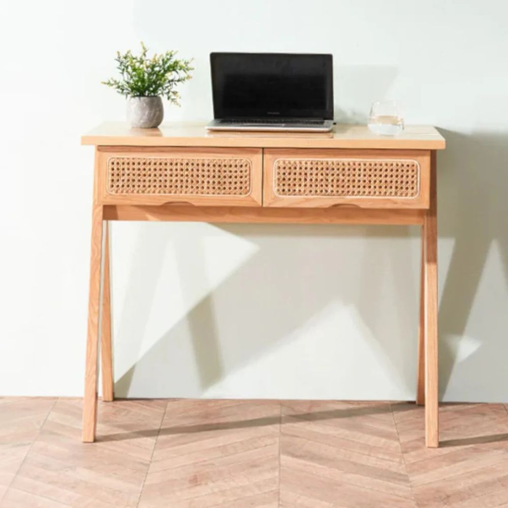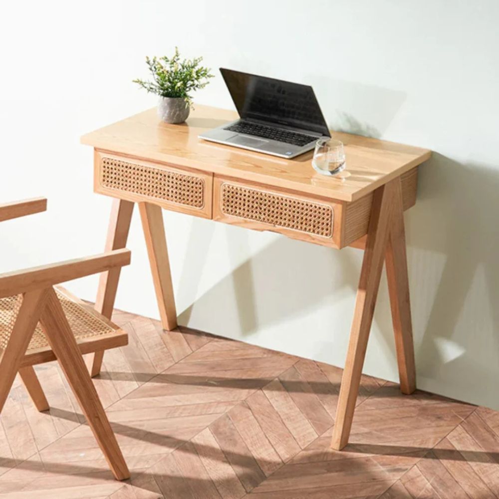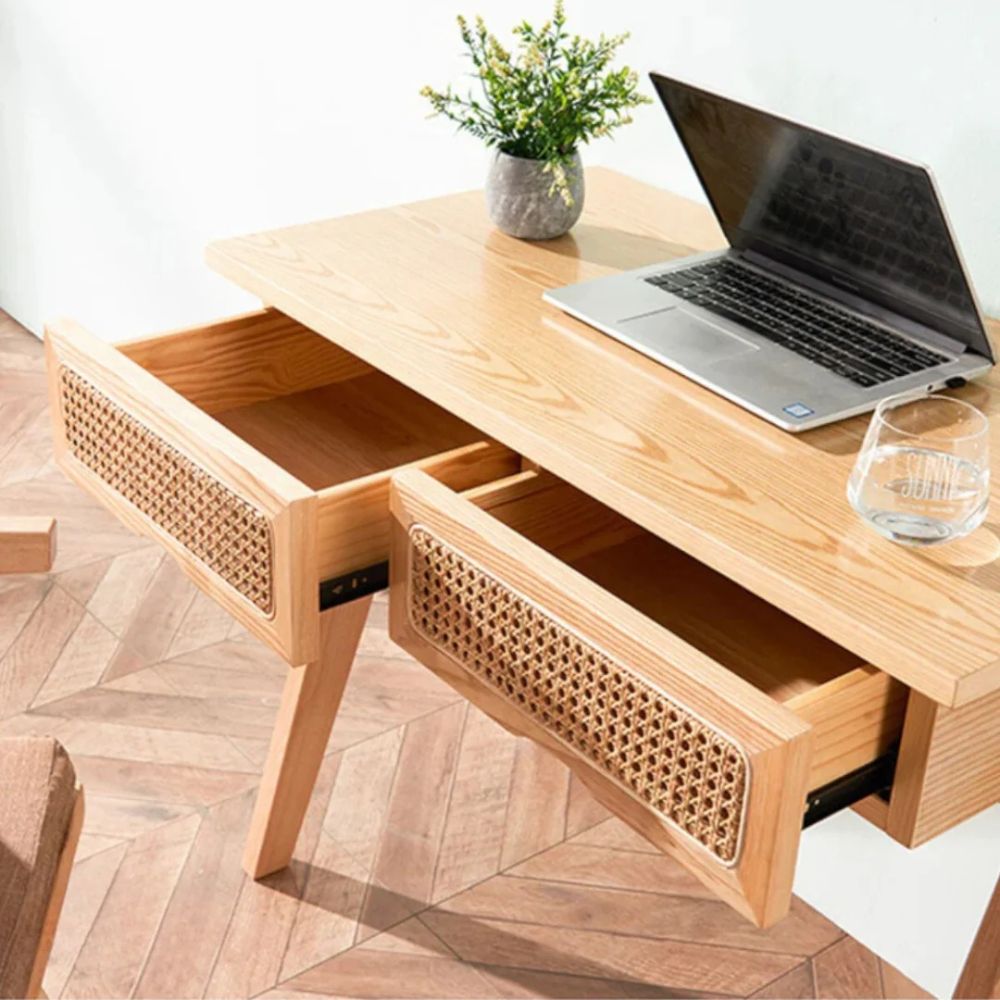 Wooden Solid Ash Wood & Rattan Study Table