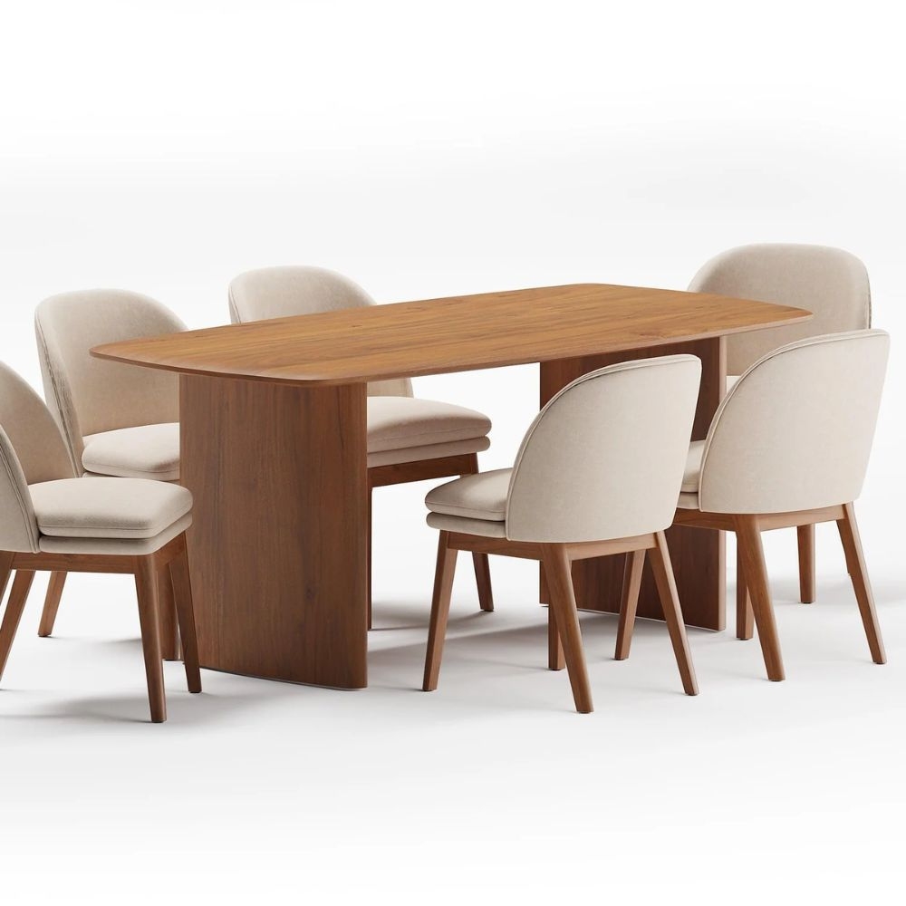 Jodhpuri Nature 6 Seater Dining Table Set – Solid Wood Dining Furniture for Modern Homes