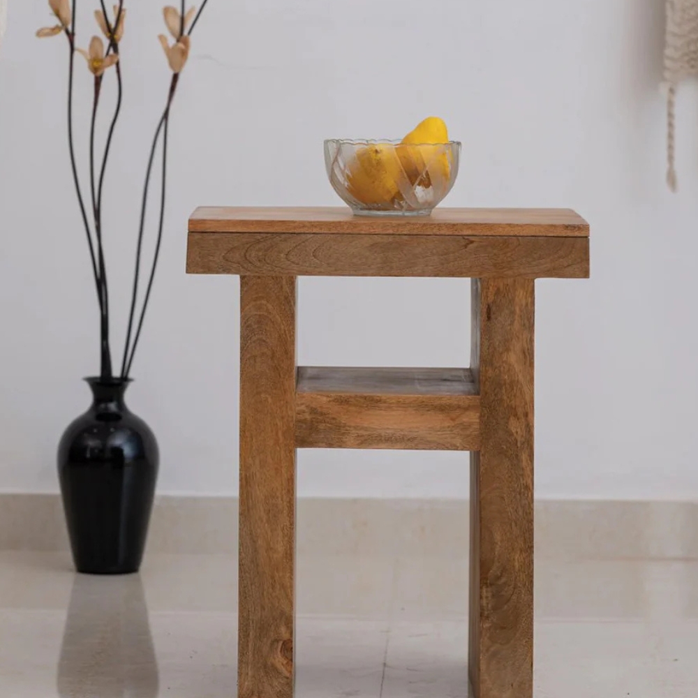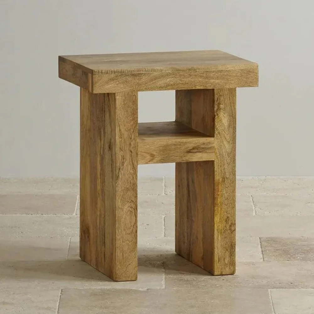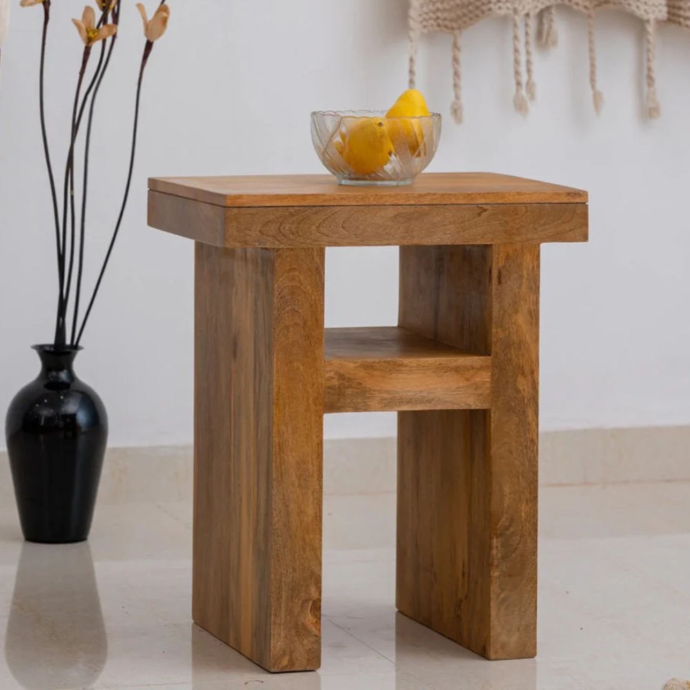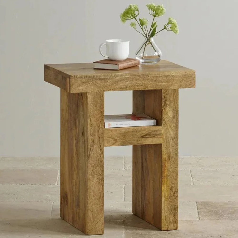 Wooden U Bedside Table Natural Mango Finish